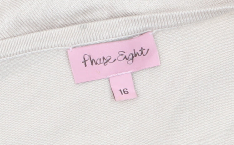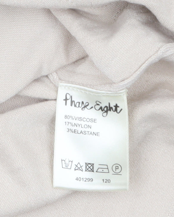 Step into effortless sophistication with this beautifully crafted Phase Eight women's beige jumper, a must-have classic for any modern wardrobe. Designed in a flattering size 16 with a soft stretch knit fabric, this jumper promises remarkable comfort and timeless style. The delicate floral embroidery across the neckline, sleeves, and hem adds a subtle touch of elegance, making it ideal for both everyday wear and special casual outings. The scoop neckline frames the collarbone gracefully, while the 3/4 length sleeves provide a relaxed, versatile silhouette perfect for layering through the seasons. Made from a premium fabric blend of 80% viscose, 17% nylon, and 3% elastane, this piece offers lightweight breathability and gentle stretch to maintain shape and comfort. Whether paired with tailored trousers for smart-casual sophistication or with jeans for a weekend look, this jumper creates an effortlessly refined appearance. In excellent condition with light signs of wear, it remains full of quality and charm—offering great value for sustainable fashion lovers. Its neutral beige tone ensures easy coordination with a wide palette of wardrobes, from warm autumn hues to fresh spring pastels. Elegant yet understated, this embroidered Phase Eight top is ideal for women who value fine quality, subtle detailing, and enduring style. Perfect for casual outings, business-casual meetings, or relaxed social gatherings, this jumper embodies both class and comfort in every stitch. A timeless addition to elevate your knitwear collection.