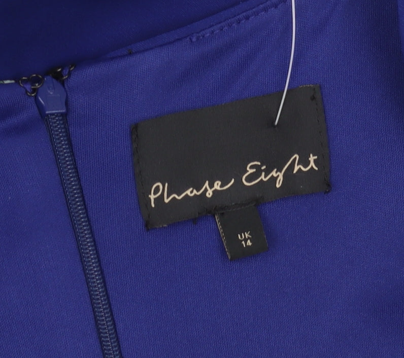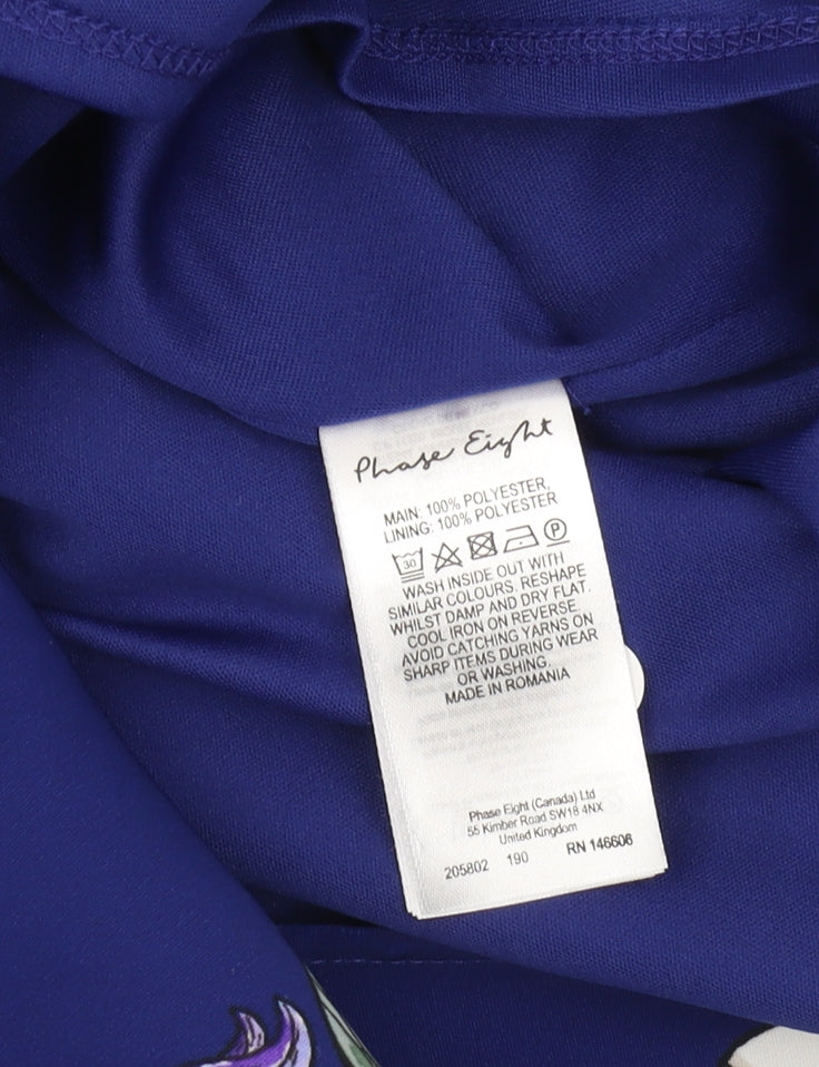 Step into effortless elegance with this stunning Phase Eight dress, perfect for those special outings or casual get-togethers. Designed in a vibrant blue hue adorned with a stunning floral pattern, this sheath dress is sure to capture attention. Made from luxurious woven polyester, it ensures comfort while maintaining style, making it an ideal choice for spring and summer seasons. Featuring a flattering V-neck and half sleeves, this dress accentuates your silhouette beautifully, offering a chic and modern look. The knee-length hemline adds to its sophisticated appeal, suitable for both casual outings and cocktail parties. The dress is thoughtfully lined, providing a quality feel and finish, enhanced by a convenient back zip closure for easy wear. Whether you're dressing for a garden party or a casual day out, this dress promises to be a versatile addition to your wardrobe. Brand new with tags attached, it's ready to be your next wardrobe favourite. Embrace the elegance of Phase Eight and make a statement with your fashion choices today.