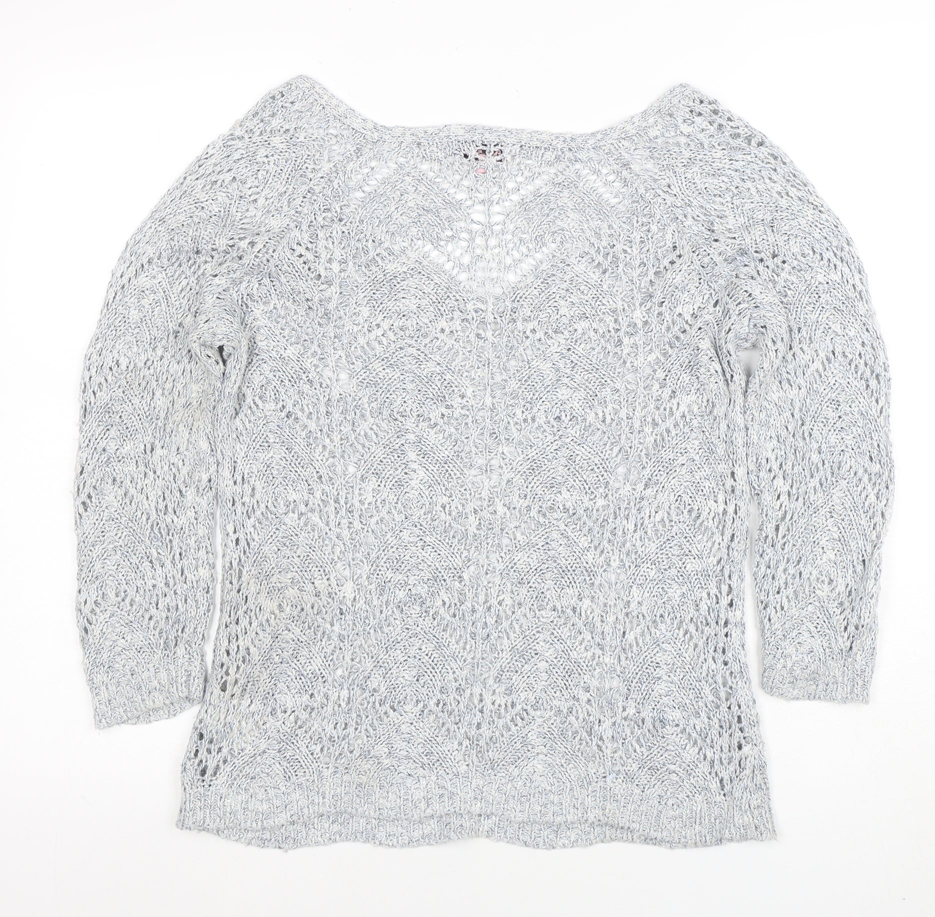 Women’s Grey Open-Knit V-Neck Jumper Size 10