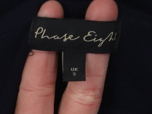 Discover style and sophistication with this Phase Eight Women's Pullover Jumper, expertly crafted for casual comfort and elegant appeal. The jumper is presented in a rich black hue that is timeless and versatile, making it a staple piece in any wardrobe. Adorned with delicate beaded accents, this jumper elevates simple design with a touch of sparkle, ideal for those who love to blend minimalism with a hint of glamour. Size small ensures a flattering fit while the relaxed silhouette provides ease and comfort throughout wear. The boat neck neckline offers a graceful, elongating effect that can be dressed up or down depending on the occasion. Crafted from a high-quality viscose blend, this jumper is soft to the touch and gentle against the skin, making it perfect for all-day wear. The trendy 3/4 dolman sleeves add a contemporary edge to the design, allowing for stylish layering over your favourite tops or shirts. Ideal for casual outings, this jumper is a fashionable choice for everyday wear. Despite its sophisticated appearance, it is great for day-to-day use with its hand wash care instructions ensuring longevity and durability. Whether paired with jeans for a laid-back look or dressed up with a smart skirt, this Phase Eight jumper excels in versatility and elegance. Embrace effortless style and premium quality with this exquisite jumper that seamlessly merges modern trends with classic comfort.