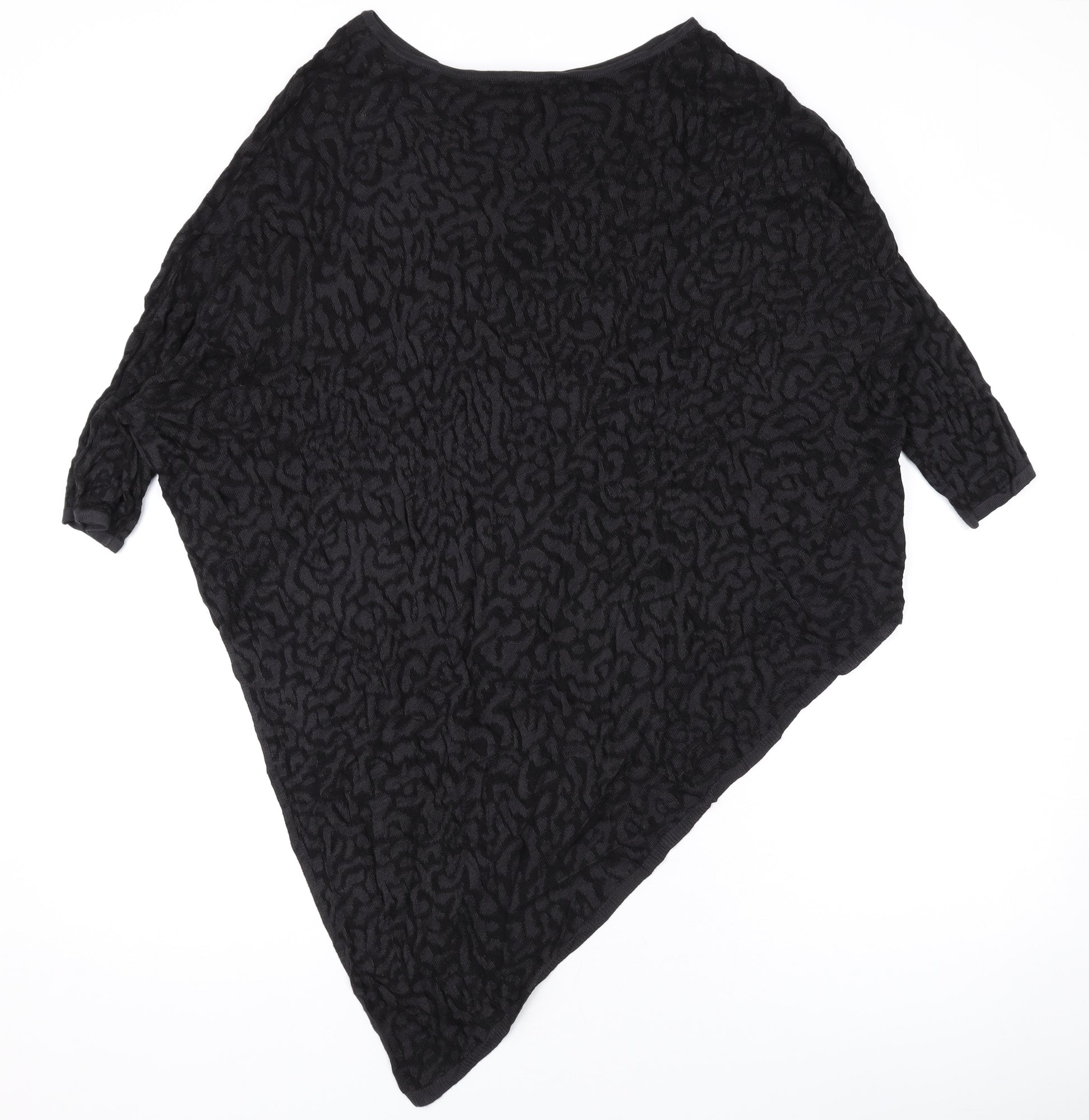 Womens Black Geometric Viscose Basic T-Shirt Size M Round Neck