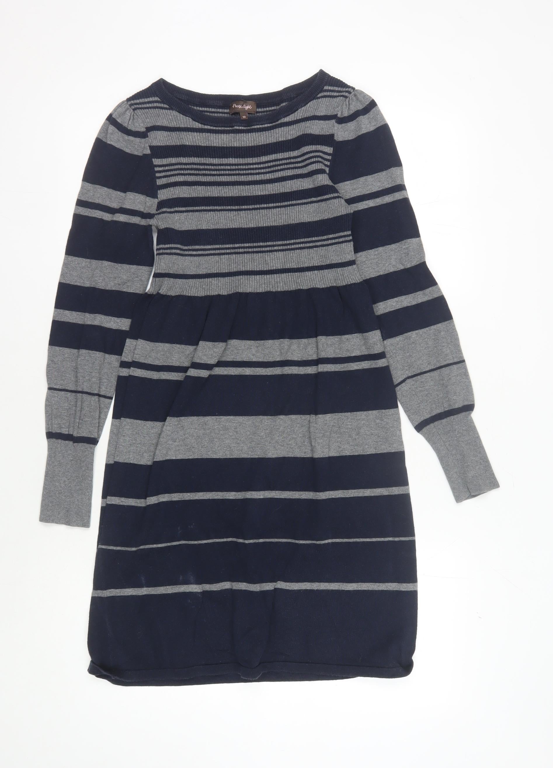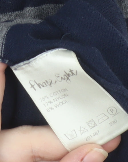 Step into effortless style with this elegant Phase Eight jumper dress. Crafted for comfort and warmth, it's perfect for a seamless transition from day to evening wear. The timeless striped pattern in blue, combined with a flattering crew neckline and long sleeves, adds a modern touch. With a carefully balanced blend of 75% cotton, 17% nylon, and 8% wool, this knit dress ensures both comfort and durability, offering a cosy feel. The regular size 10 ensures a flattering fit for various body shapes. Pair this versatile piece with boots for a casual outing or elevate it with heels for a chic, polished look. Ideal for autumn and winter months, this jumper dress becomes a wardrobe staple, providing a fashionable solution for those chilly days ahead. Offering quality and style, it's an excellent choice for those who love classic, effortless fashion. Though pre-loved, it remains in excellent condition, with no visible signs of wear. Don't miss the opportunity to own this understated yet stylish piece from Phase Eight, carefully curated for the modern woman.