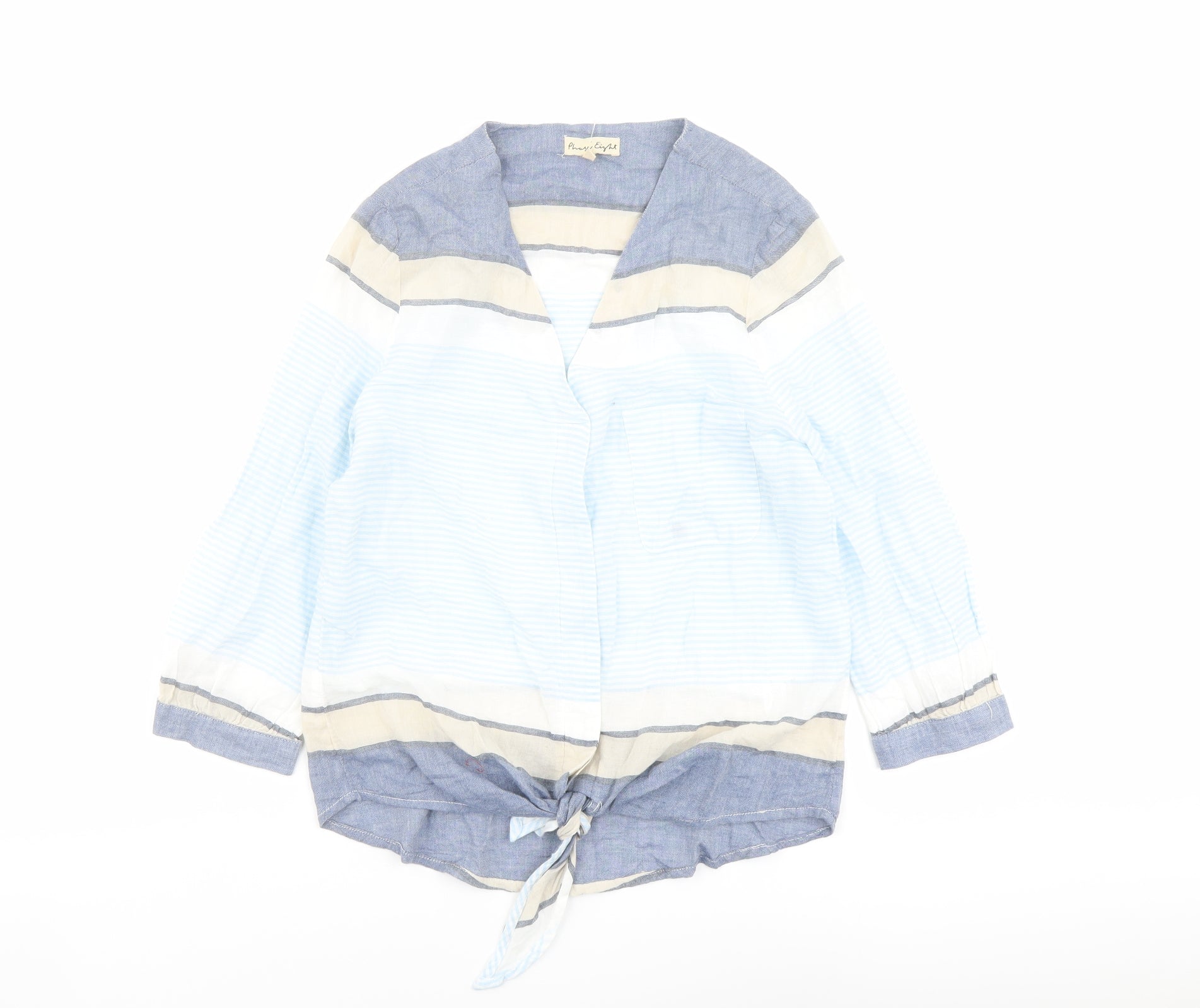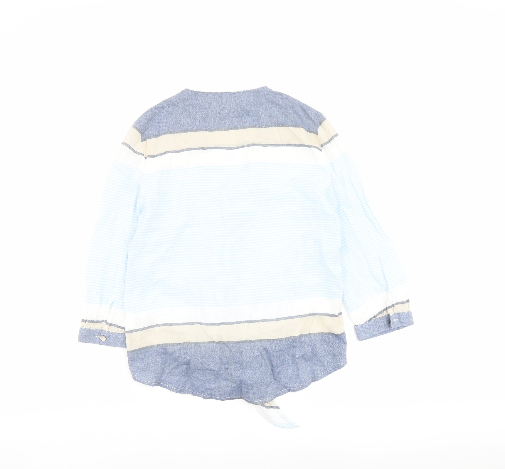 Womens Blue Striped Cotton Basic Blouse Size 18 V-Neck - Tie Front Detail