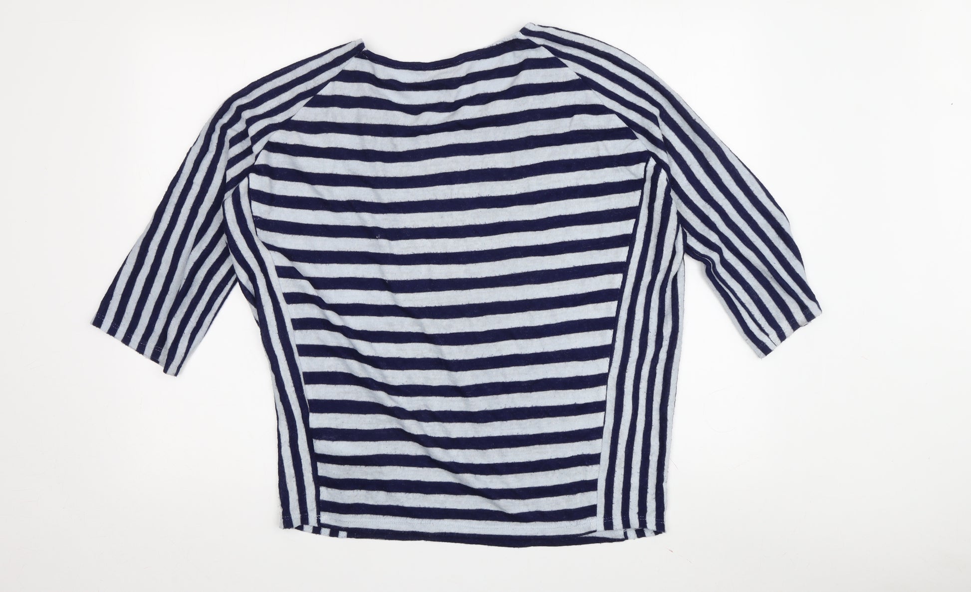 Step out in style with this elegant Phase Eight Women's Blue Striped Jersey Top in Size 14. Perfectly tailored for the modern woman who appreciates comfort and style, this top is an ideal addition to your wardrobe. Made from a lightweight blend of polyester and viscose, it promises a relaxed fit that drapes beautifully over your figure. The classic crew neckline and 3/4 raglan sleeves add a subtle touch of sophistication, making it suitable for various occasions.The striking blue striped pattern is both timeless and chic, ensuring you stand out in any crowd. Designed for casual comfort, this top is perfect for those warm spring and summer days. Whether you're heading to a brunch, a casual outing, or just enjoying a day out, this top ensures you do it in style. The pullover closure means it's easy to wear, taking you through your day with ease and elegance.Crafted with care, the material allows for breathability and ease of maintenance with a simple hand wash. Though previously owned, this top remains in excellent condition, showing minimal signs of wear. It's the perfect piece for those who value high-quality fashion staples in their closet.Update your collection with this versatile Phase Eight top and enjoy the blend of comfort, style, and elegance it offers. A must-have for any woman's casual wear collection, grab yours and make a stylish statement wherever you go.