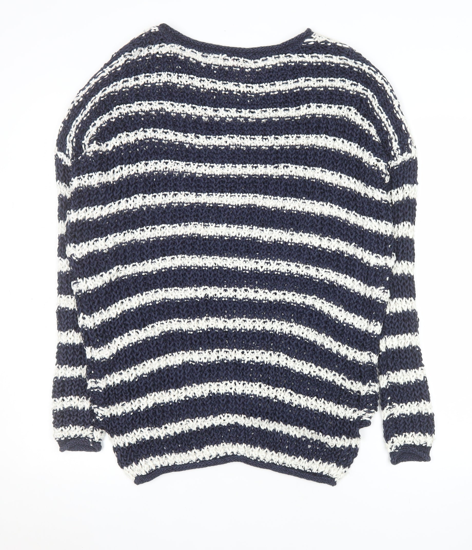 Women's Blue White Striped Open-Knit Jumper Size S