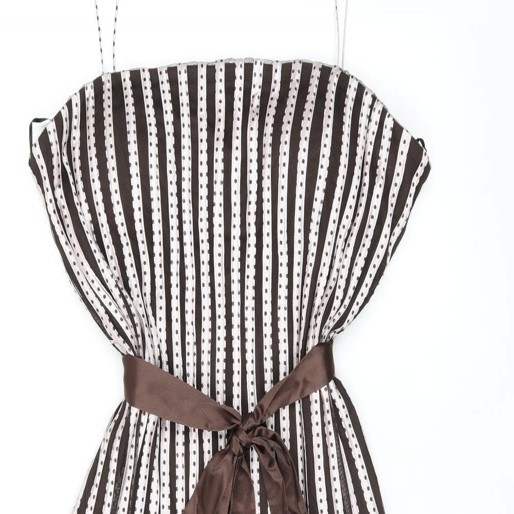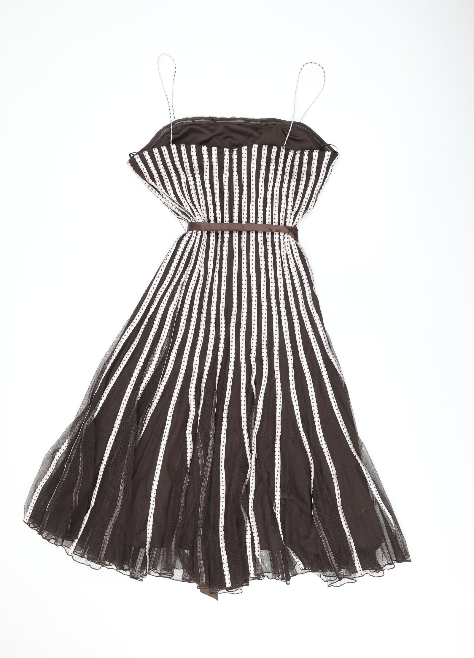 Womens Brown Polka Dot Polyester A-Line Size 16 Off the Shoulder Zip