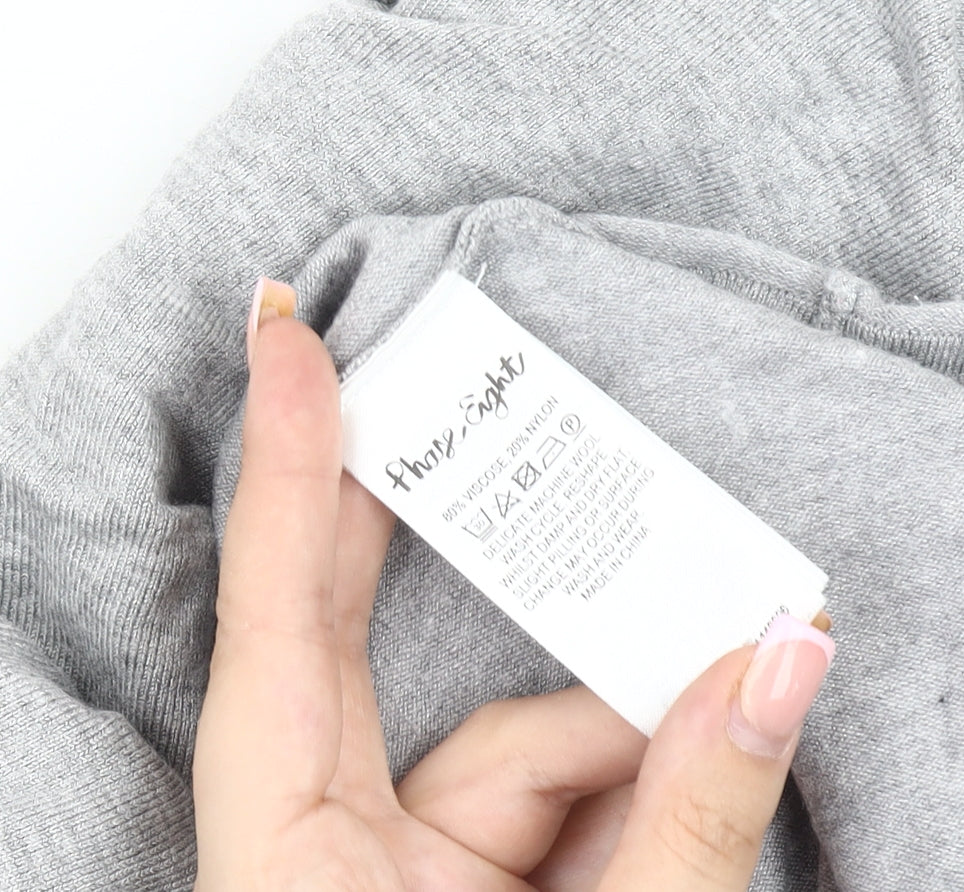 Introducing the elegant Phase Eight Women's Grey Boat Neck Jumper, designed with your comfort and style in mind. This jumper, crafted from a soft blend of viscose and nylon, offers a lightweight feel, perfect for all seasons. The modern boat neck adds a touch of sophistication, making it a versatile addition to your wardrobe.In a stylish grey hue, this jumper can easily be paired with your favourite jeans or skirts for a chic, casual look. Its long sleeves ensure you stay cosy, while the zip accent adds a contemporary flair. The knit fabric type guarantees both comfort and breathability, allowing you to enjoy your day with ease.Ideal for casual occasions, this jumper exudes understated elegance that will keep you looking fashionable without effort. It's machine washable, making garment care a breeze, and its regular fit is perfect for a wide range of body types.Offered in excellent pre-owned condition, this Phase Eight jumper remains in good shape with no significant signs of wear, an indispensable piece you'll love to wear time and again. Snag this timeless piece at an unbeatable price, ensuring you look stylish while remaining budget-conscious.