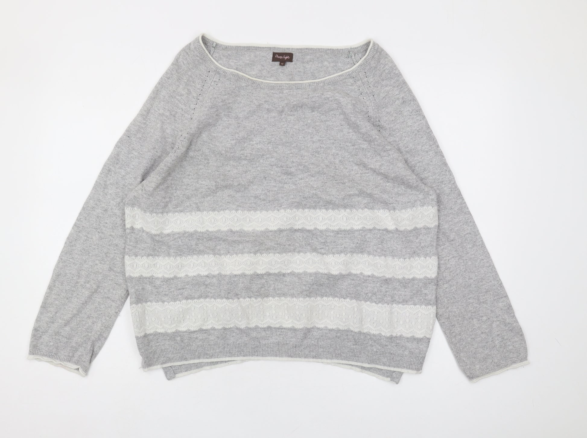 Elevate your wardrobe with this elegant Phase Eight women's jumper, crafted from a luxurious blend of cotton, viscose, nylon, and angora for a soft and comfortable feel. The understated grey colour, coupled with a boat neckline, makes it a versatile piece suitable for various occasions. Ideal for the colder months, this jumper features long sleeves and a regular fit, offering both style and comfort. The knit fabric enhances its warmth, making it a perfect choice for autumn, spring, and winter outings. With careful attention to detail, Phase Eight ensures that this jumper stands out with its impeccable craftsmanship. Though it's in excellent condition with no visible wear, it is recommended for dry clean only, ensuring longevity in your wardrobe. Perfect for casual settings, this jumper can be paired effortlessly with jeans or skirts. Get ready to add a touch of sophistication to your collection with this classic jumper from Phase Eight.