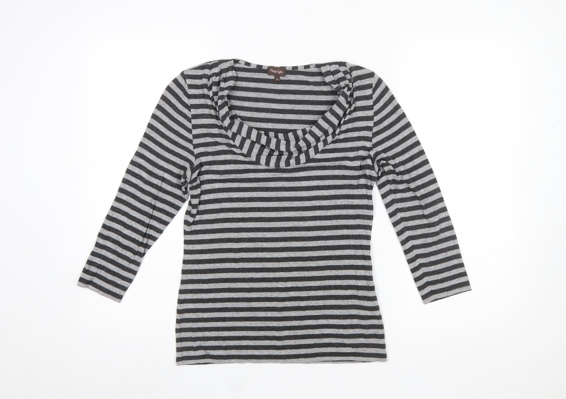 Women's Grey Striped Cowl Neck Jersey Top Size 12