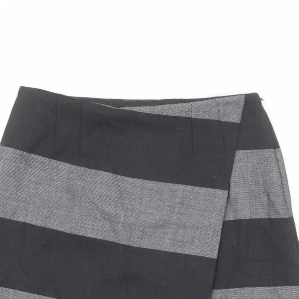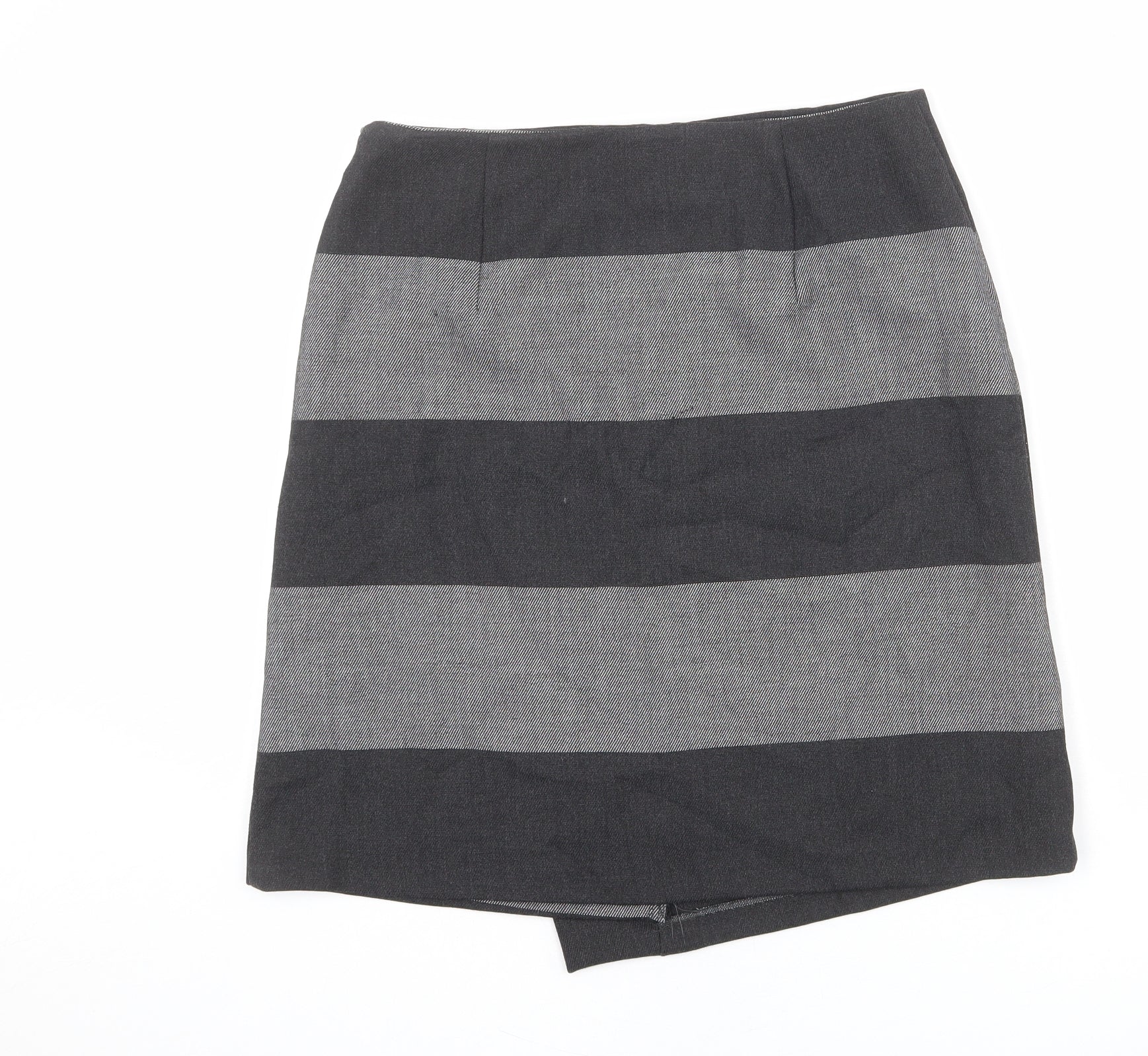 Womens Grey Striped Polyester A-Line Skirt Size 12 Zip