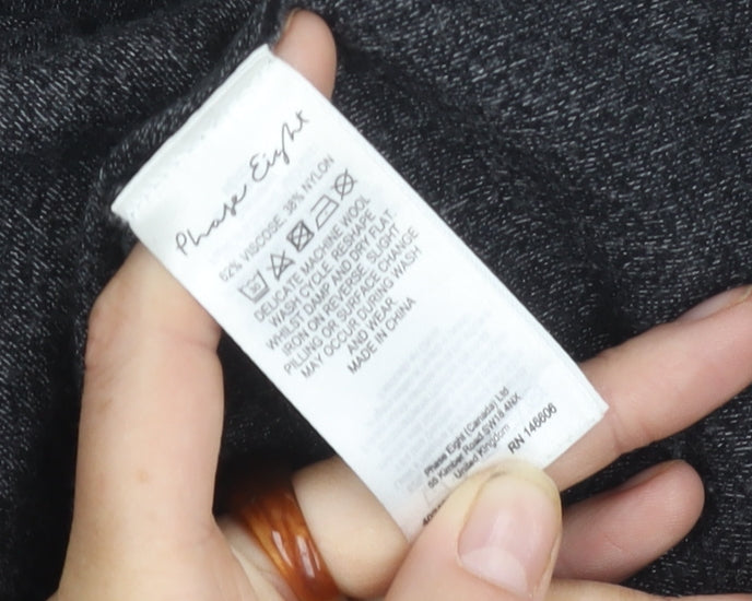 Discover effortless elegance with this Phase Eight Women's Poncho in medium, perfect for enhancing your wardrobe. Crafted with a sophisticated geometric design in chic black, this piece is ideal for modern style enthusiasts. The poncho style offers a relaxed fit, while the V-neckline adds a touch of contemporary flair. Made from a wonderfully soft blend of viscose and nylon, it promises comfort and a luxurious feel. The short sleeves make it versatile for layering, ensuring you stay snug yet stylish. Whether you're dressing it up for a casual outing or down for a relaxed evening, this poncho is your go-to choice for a fashionable twist. Crafted for regular size, it suits a variety of occasions, from casual day outs to stylish gatherings. Ensure you stand out with this timeless piece in excellent condition, ready to be a staple in your collection.
