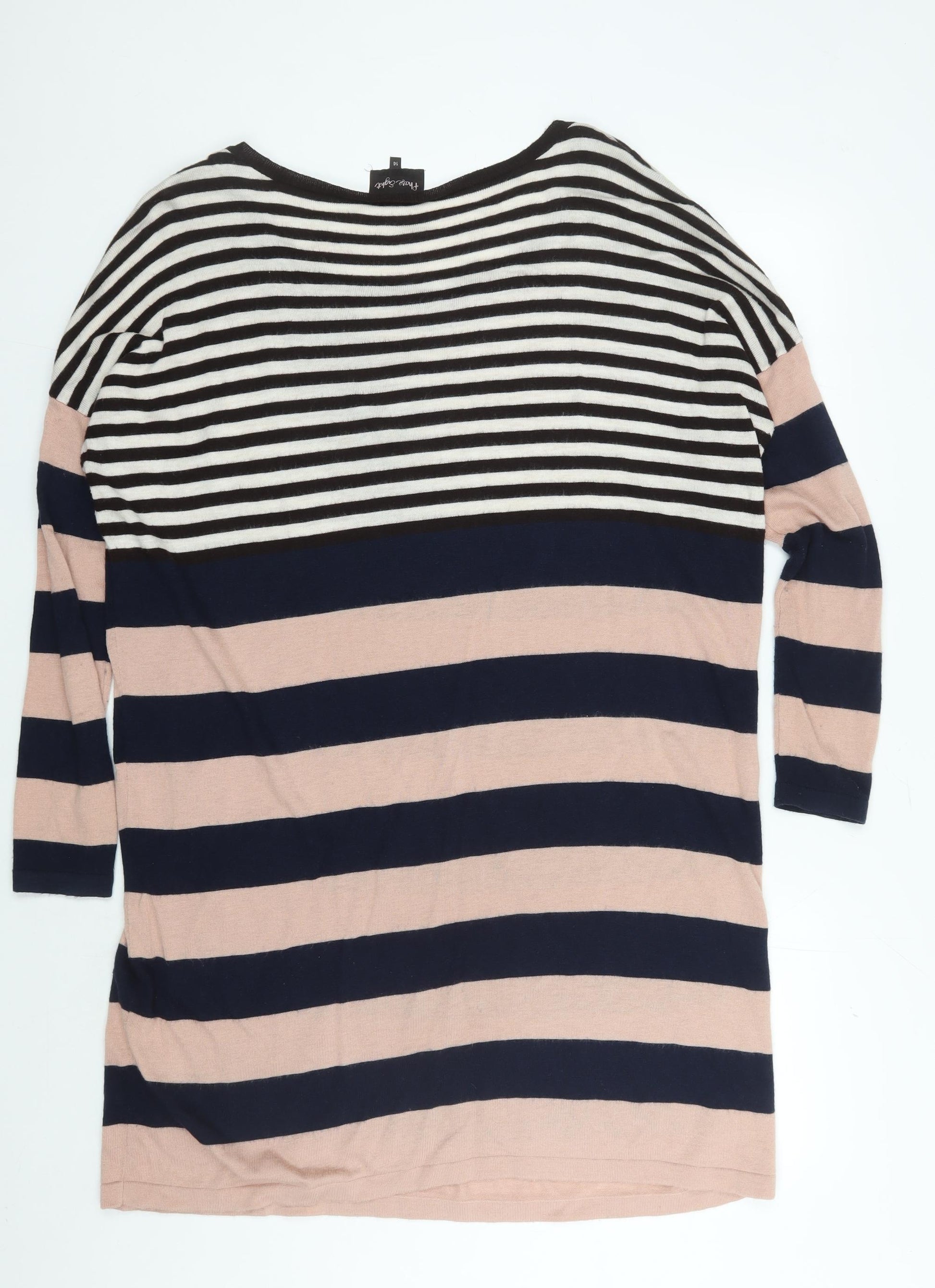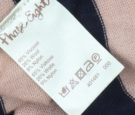 This stunning Phase Eight jumper is a must-have for your wardrobe. Perfectly crafted for women, it features a flattering boat neckline and long sleeves, providing style and comfort for everyday wear. The multicoloured striped pattern adds a vibrant touch, making it ideal for casual outings during autumn and spring. Constructed from a blend of viscose, wool, and nylon, it ensures softness and durability. With a tight-knit fabric, this pullover offers a cozy fit, perfect for layering. Despite being previously worn, it remains in excellent condition, showcasing no visible defects or signs of wear. Available in size 14, it offers a regular fit, making it a versatile addition to your collection. Elevate your fashion game with this chic jumper, offering easy maintenance with machine washable care instructions. Whether you're heading out for a casual day with friends or simply relaxing at home, this jumper promises to be your go-to choice for effortless style and comfort.