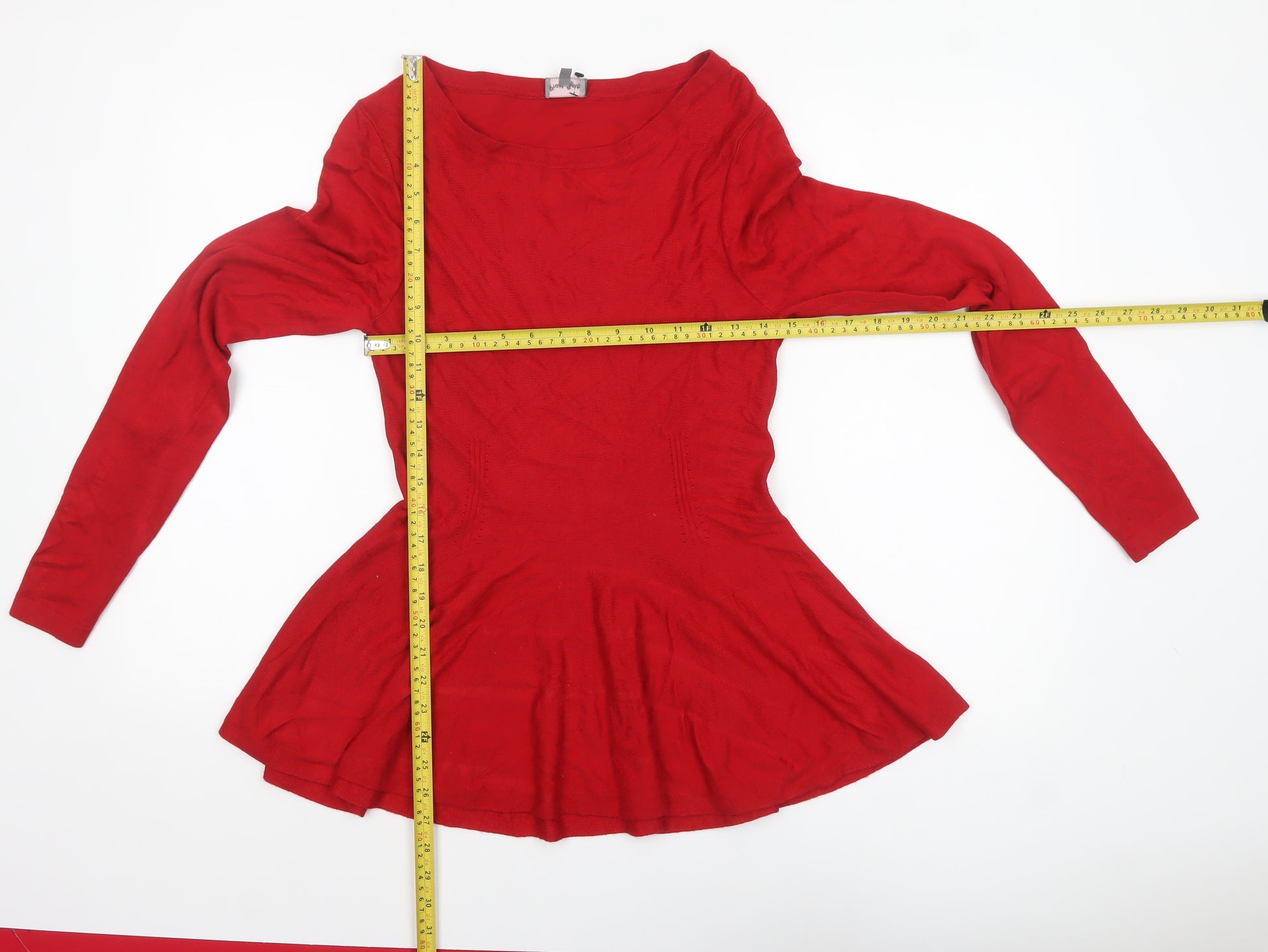 Women's Red Long Sleeve Peplum Jumper Size 10