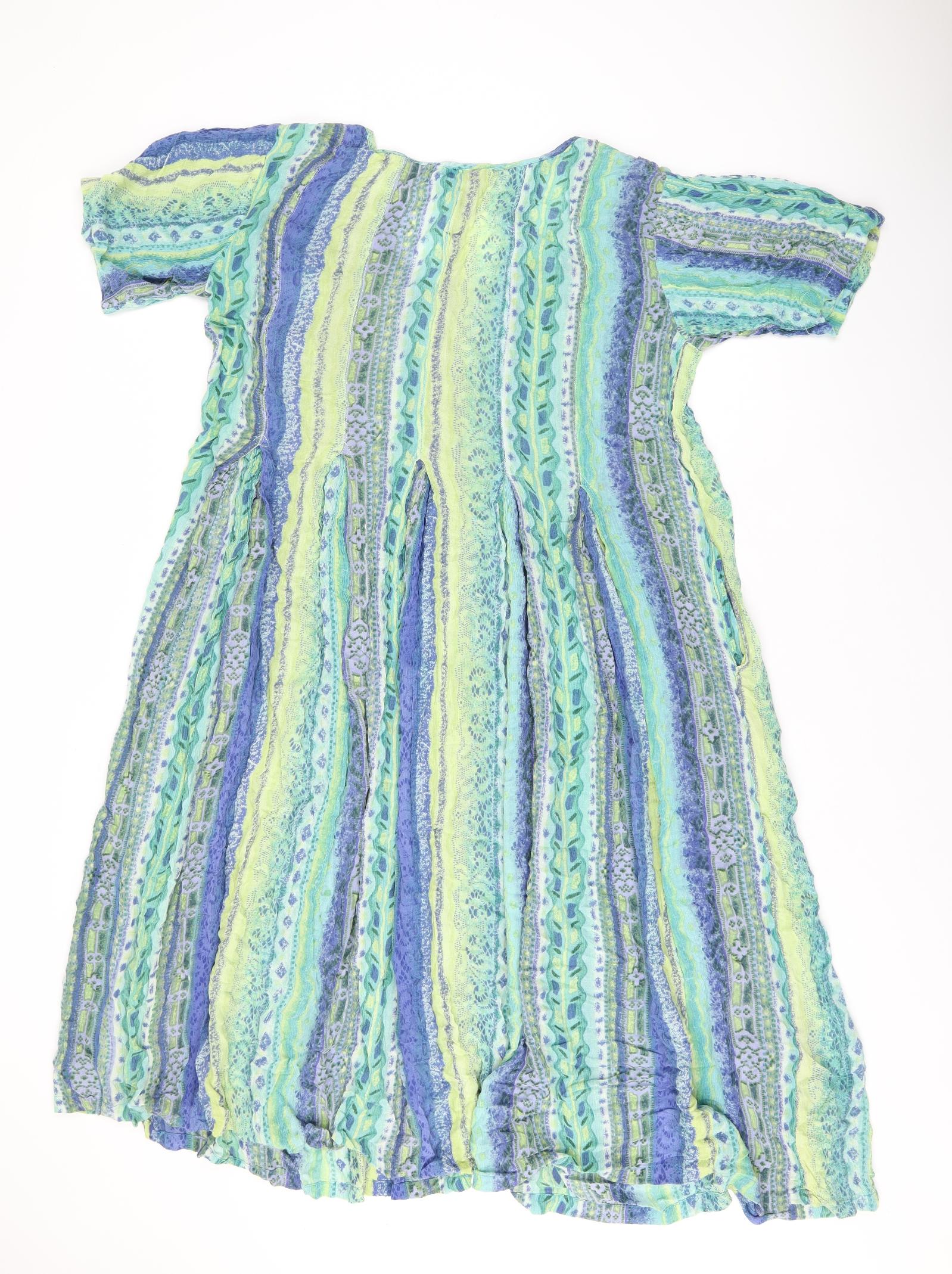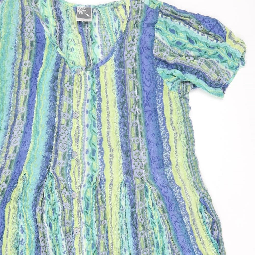 Womens Green Geometric Viscose Shift Size 14 Scoop Neck Button