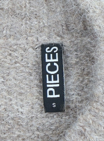 Women's Beige Mock Neck Pullover Knit Jumper Size S