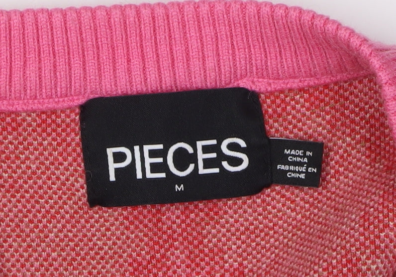Embrace a vibrant and colourful touch with this Pieces Women's Pink Argyle Vest Jumper. Crafted from a supple blend of fabrics including viscose, polyester, and nylon, this lightweight vest offers the perfect layer for both autumn and spring. Its striking argyle pattern in pink not only catches the eye but also enhances any casual ensemble. The regular fit with a sleeveless design and V-neckline offers style and comfort, making it an ideal choice for laid-back occasions. Easy to maintain with machine washable care, this jumper ensures hassle-free wear. Despite slight wear on the fabric, its excellent condition promises long-lasting style and wearability. Perfect for adding a splash of colour to your wardrobe.