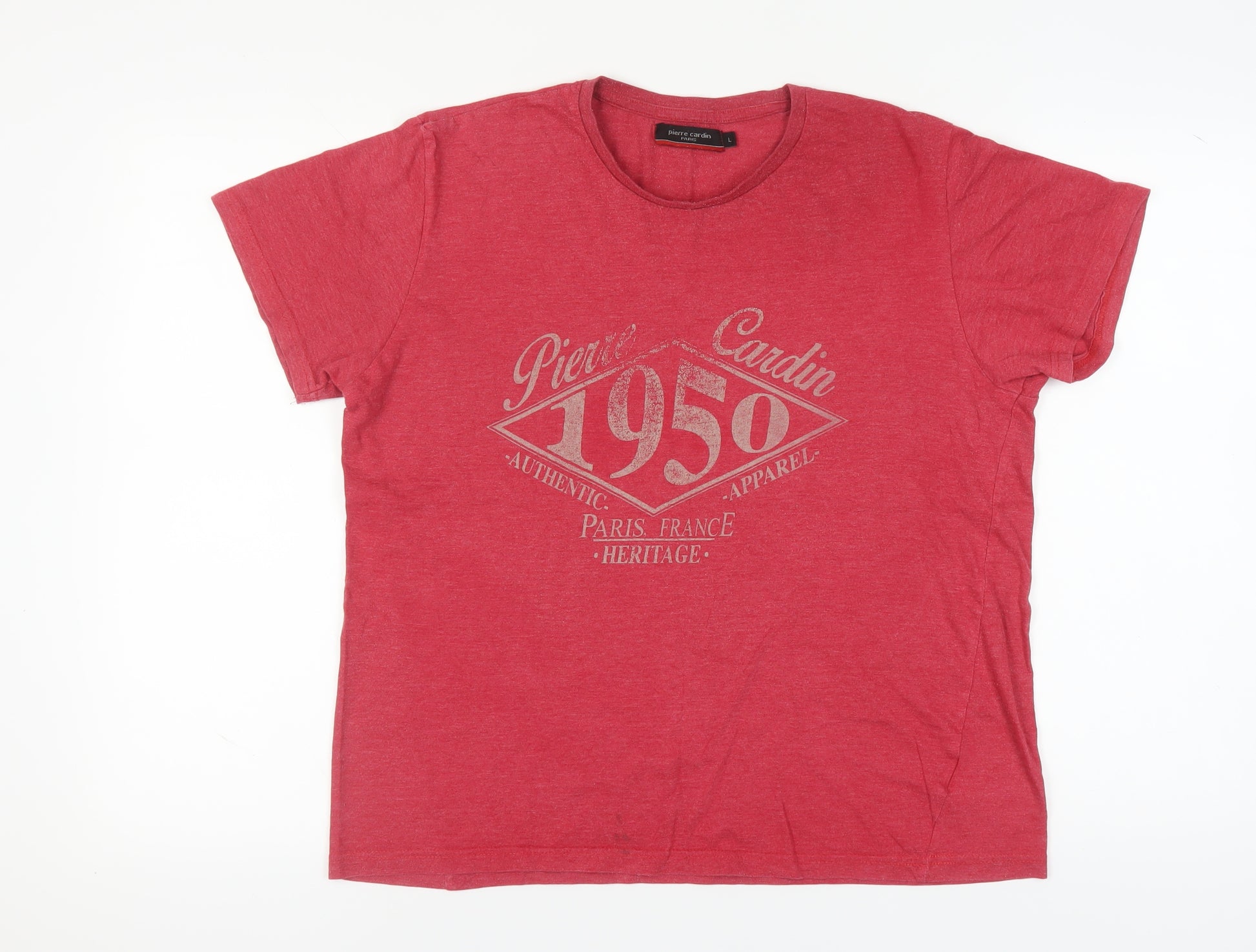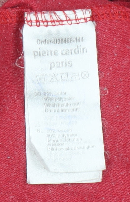 Discover timeless style with this Pierre Cardin Men's T-Shirt in a vibrant red hue. Tailored for the modern man, this short sleeve tee features a striking graphic print that nods to retro and heritage themes. Adorned with the iconic Pierre Cardin Paris logo, it exudes a classic Parisian charm perfect for any casual outing or relaxed weekend look.Crafted from a soft and comfortable blend of 60% cotton and 40% polyester, this crew neck t-shirt offers a gentle, breathable touch against the skin, making it ideal for all seasons. Its regular fit and classic Jersey fabric ensure not only a great look but also easy movement and all-day comfort.Perfectly sized for those who wear a large, this garment comes in a stylish red color, sure to add a pop of colour to any wardrobe. While the t-shirt is designed for machine washing, it maintains its pristine condition for many wears to come.Escape the ordinary with this bold addition to your t-shirt collection. Its comfortable material and eye-catching print make it a versatile piece that pairs effortlessly with jeans or shorts, making it an essential for any style-conscious individual.Whether you're revisiting the classic vibes of the 1950s or aiming for a retro street style, this t-shirt delivers understated sophistication with ease. Its excellent condition ensures a fresh and polished look, perfect for any casual occasion. Grab this limited piece and make a statement in your everyday wear.