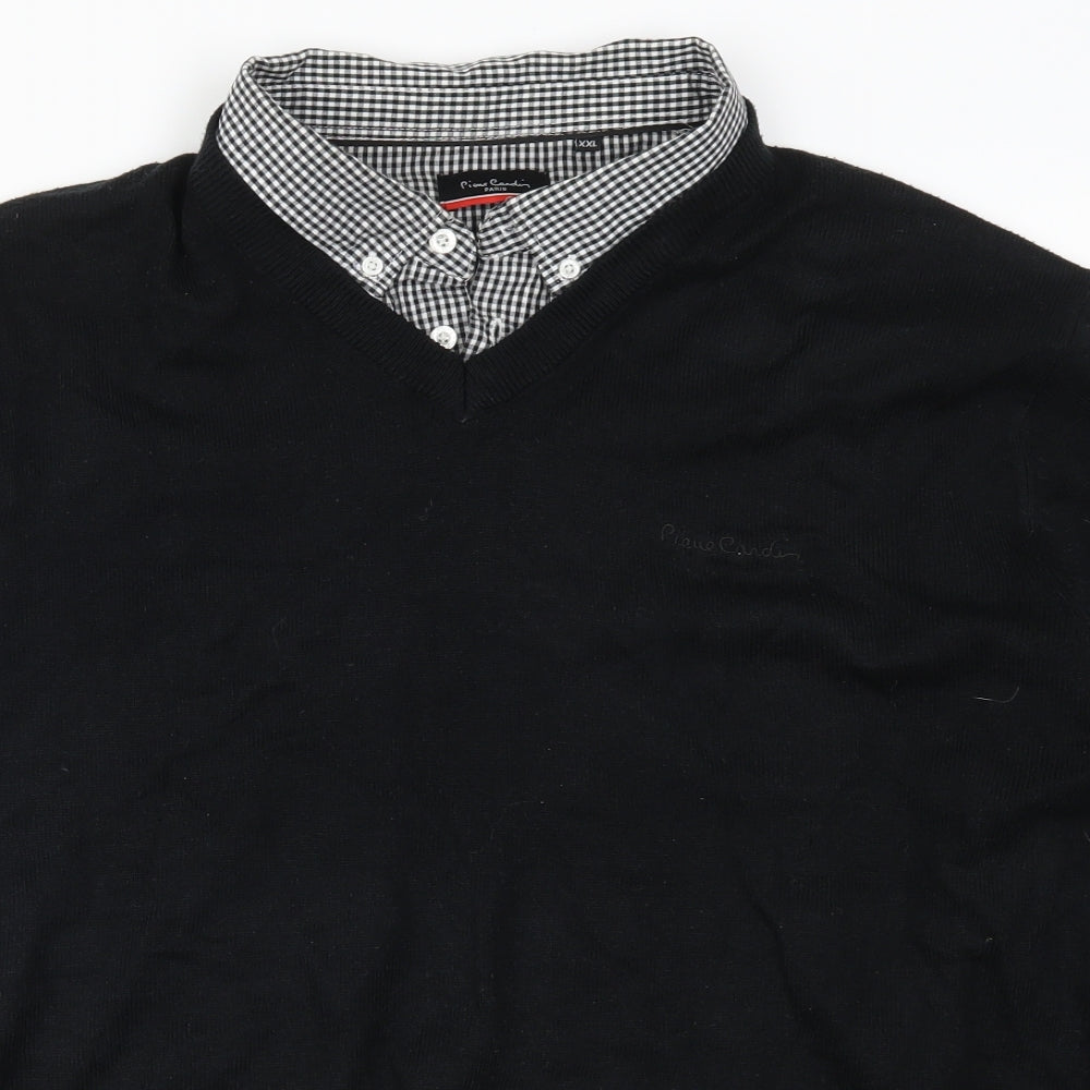 Pierre Cardin Men's Green 2XL Cotton V-Neck Jumper