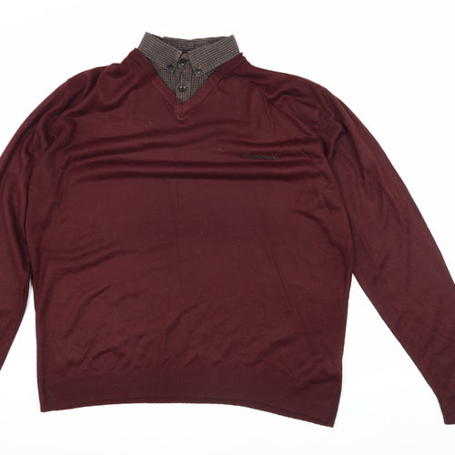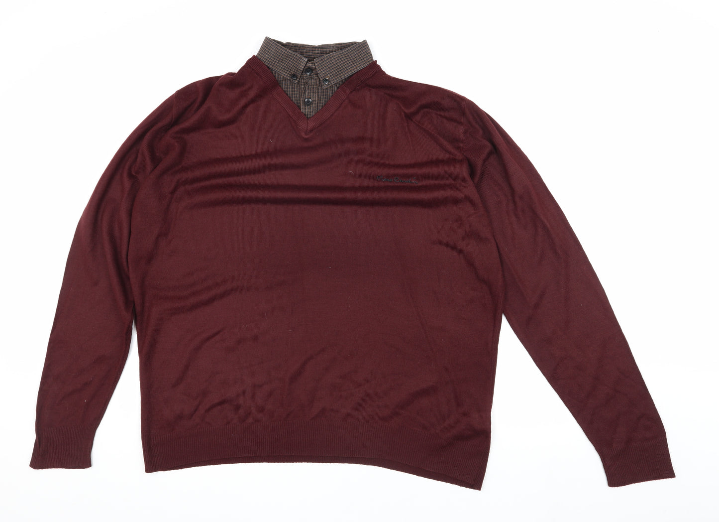 Men's Red Pullover Jumper, Size L, Classic Knit