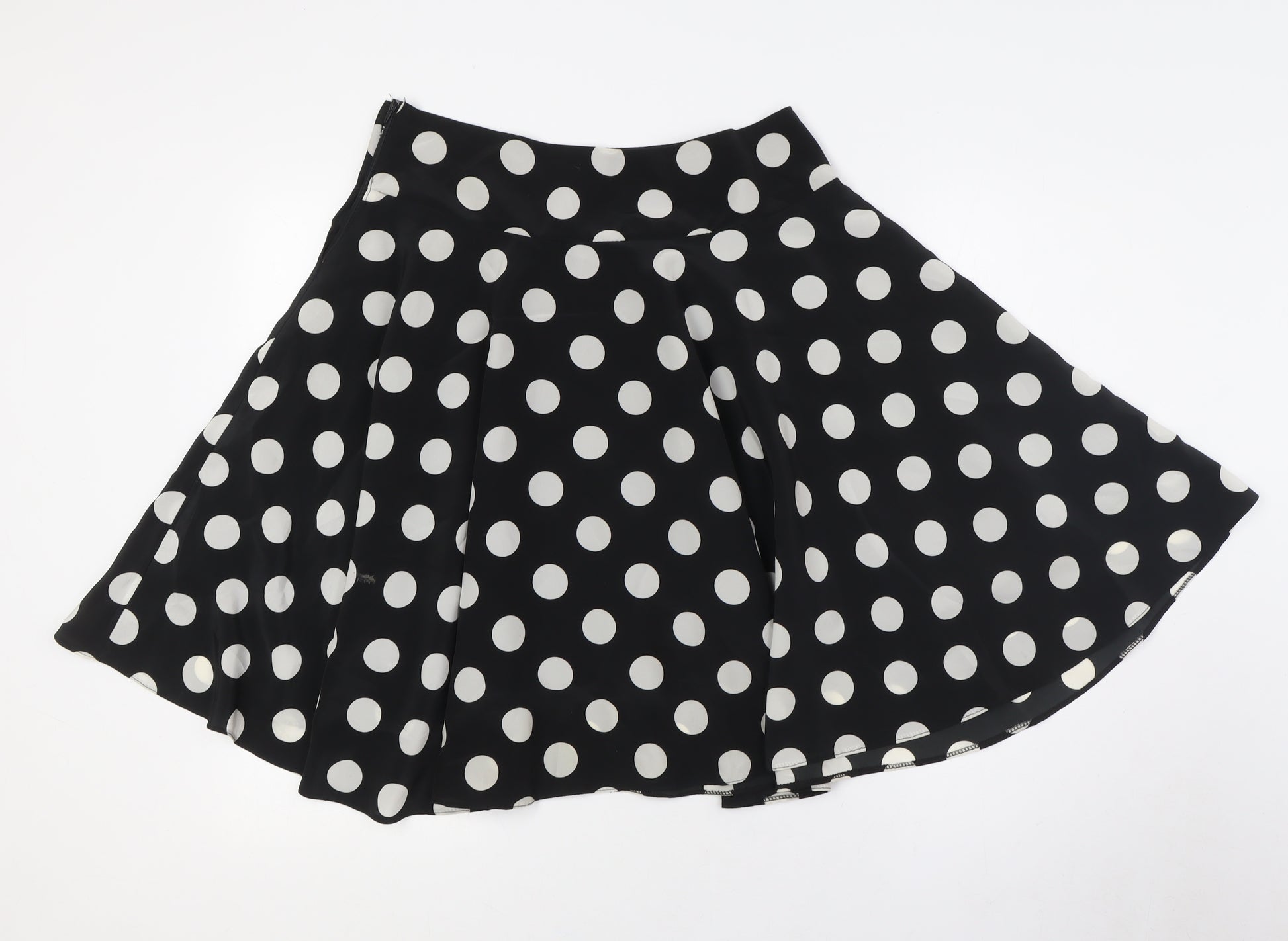 Womens Black Polka Dot Polyester A-Line Skirt Size 10 Zip
