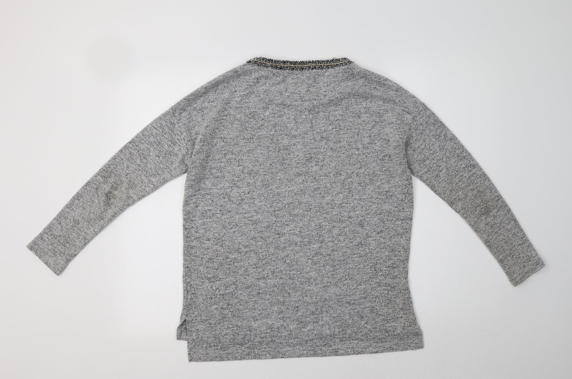 Womens Grey Crew Neck Pullover Jumper Size M - Embellished Collar