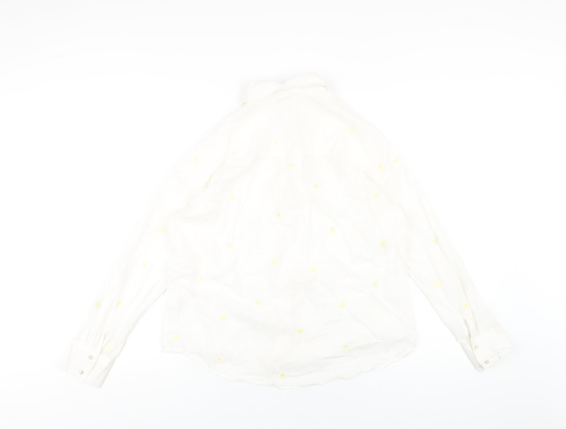 MNG Women’s White Geometric Button-Up Long Sleeve Shirt Size 12