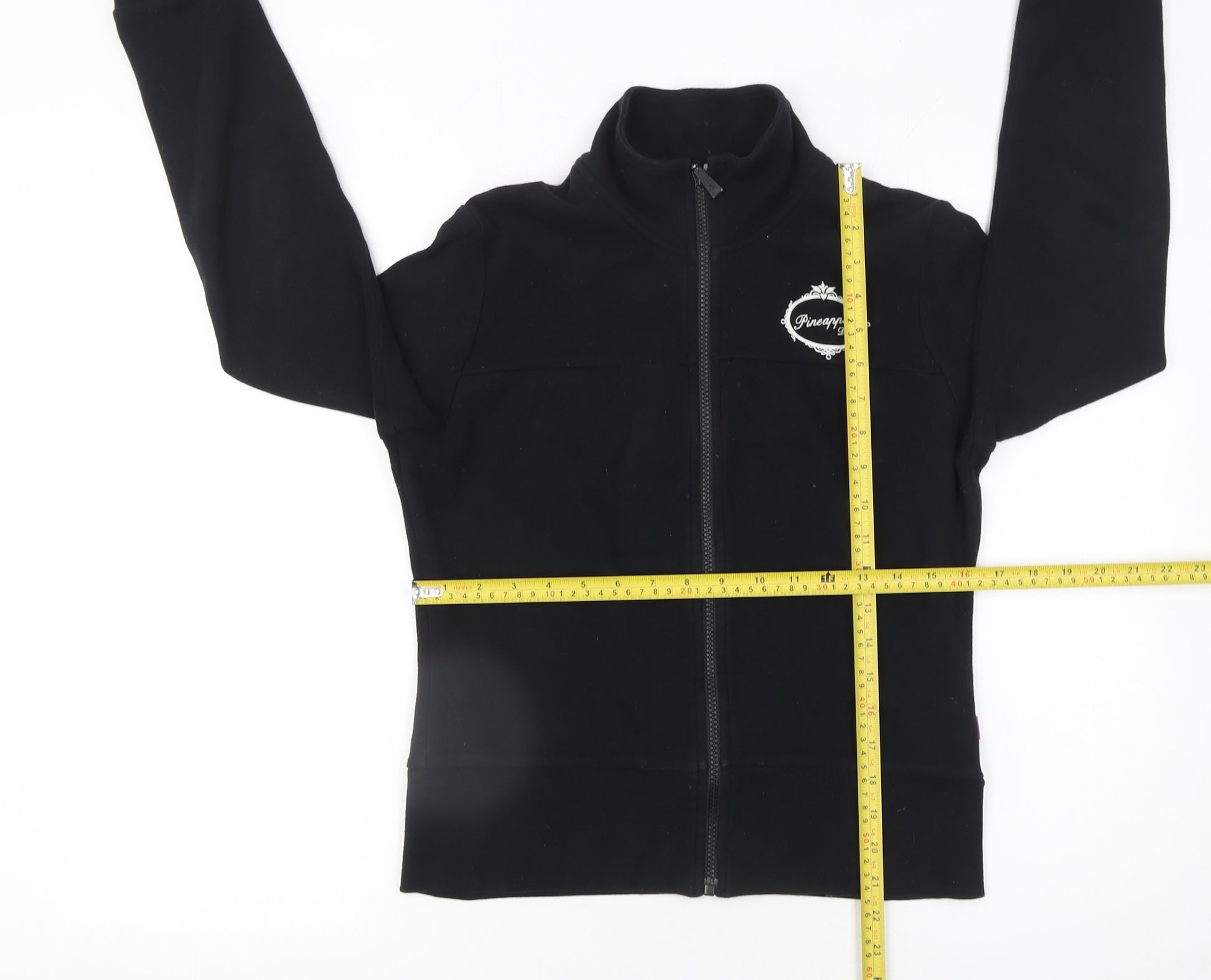 Stay warm and stylish with this Pineapple women's black track jacket, perfect for everyday activewear or casual days out. This versatile jacket, crafted from 100% cotton fleece, offers a soft and breathable texture that ensures lasting comfort throughout your day. Designed with a sleek full-zip front and a high collar, this jacket provides both practicality and modern sporty appeal. The fitted cuff and hem provide a flattering silhouette, making it as fashionable as it is functional. Ideal for dance, yoga, gym training, or light workouts, this jacket also suits relaxed outfits for travelling or lounging. The minimalist black design is complemented by the subtle Pineapple logo on the chest, adding a touch of signature charm that fans of the brand will appreciate. A wardrobe essential for transitional seasons, it layers effortlessly over tops and sportswear during spring, autumn, or winter. With its lightweight and comfortable construction, this piece allows ease of movement, making it suitable for a range of activities while maintaining a refined finish. The regular fit ensures a comfortable wear without restriction, suitable for active days or athleisure styling. Although pre-owned, it remains in excellent condition with minimal signs of use and light lint only. This Pineapple jacket represents an affordable way to refresh your sportswear collection with quality and classic appeal. Easy to care for and machine washable, it’s a practical favourite that offers warmth, breathability, and style in one. Perfect for layering up, this jacket is bound to become a go-to choice for anyone seeking laid-back, active style with a feminine touch.