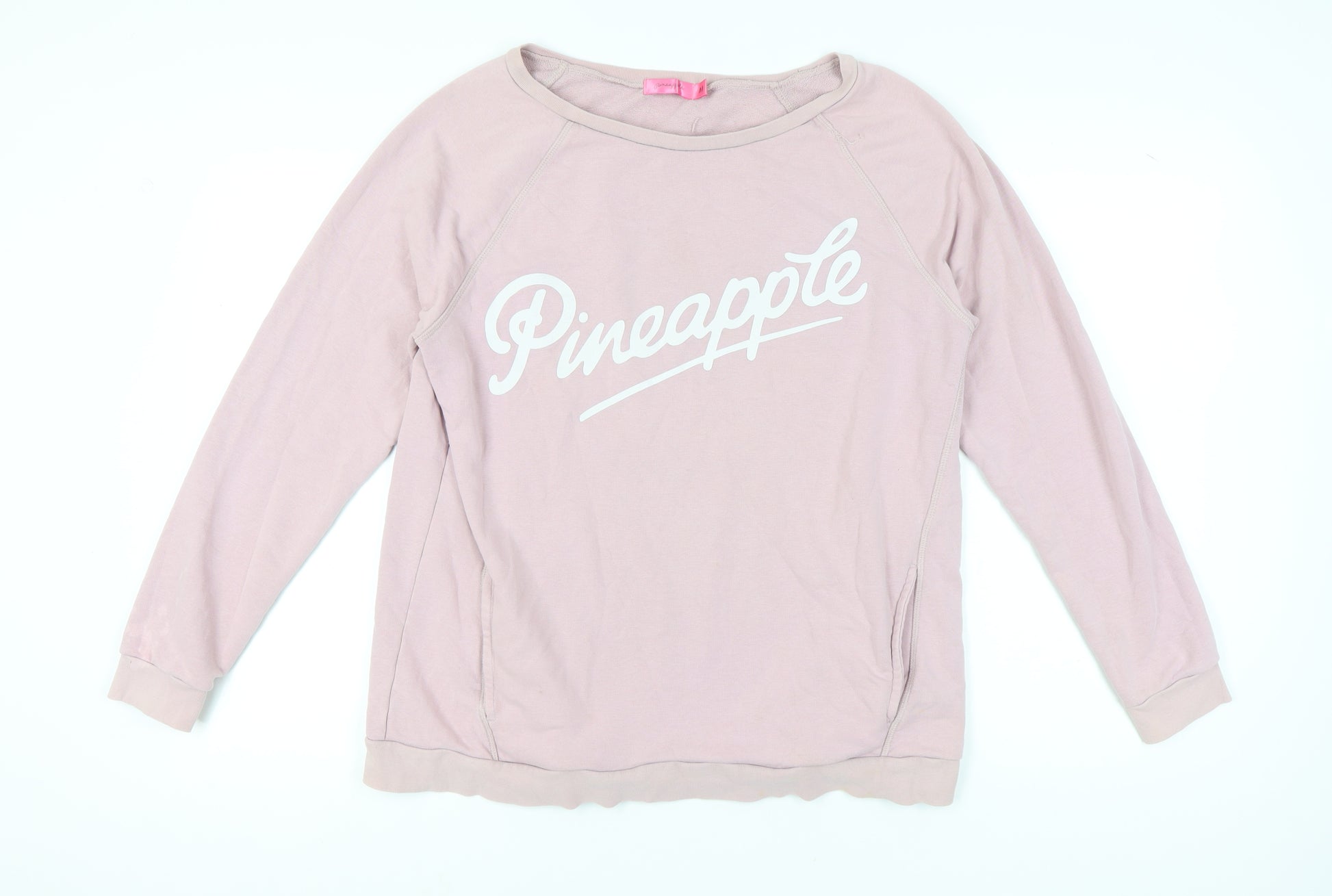 Introducing the Pineapple Women's Sweatshirt, perfect for adding a pop of colour to your wardrobe. This relaxed-fit, medium-sized sweatshirt is an ideal choice for casual outings or lounging at home. The delightful pink hue, combined with the iconic Pineapple logo, offers a stylish and trendy look. Crafted from 100% breathable cotton, it ensures comfort and ease of wear throughout the day. The round neckline and raglan sleeves contribute to its relaxed yet fashionable wearability. This pullover sweatshirt is not only machine washable, making it easy to care for, but also versatile enough to wear across all seasons. Whether paired with jeans for a casual outing or sweatpants for a cozy day indoors, this Pineapple sweatshirt promises to be a staple in your wardrobe. Don't miss out on this stylish piece, perfect for any fashion-forward woman seeking comfort without compromising style.