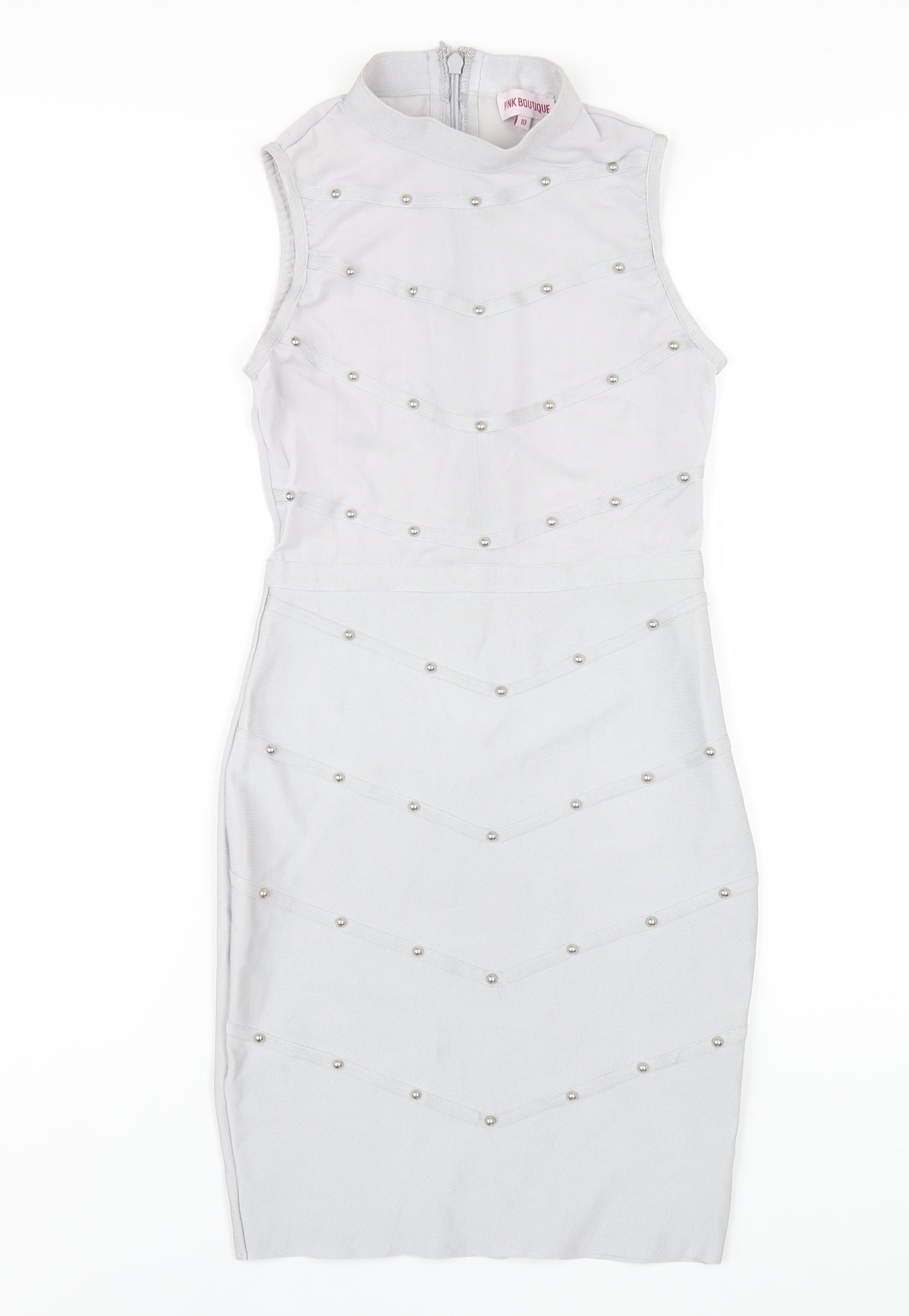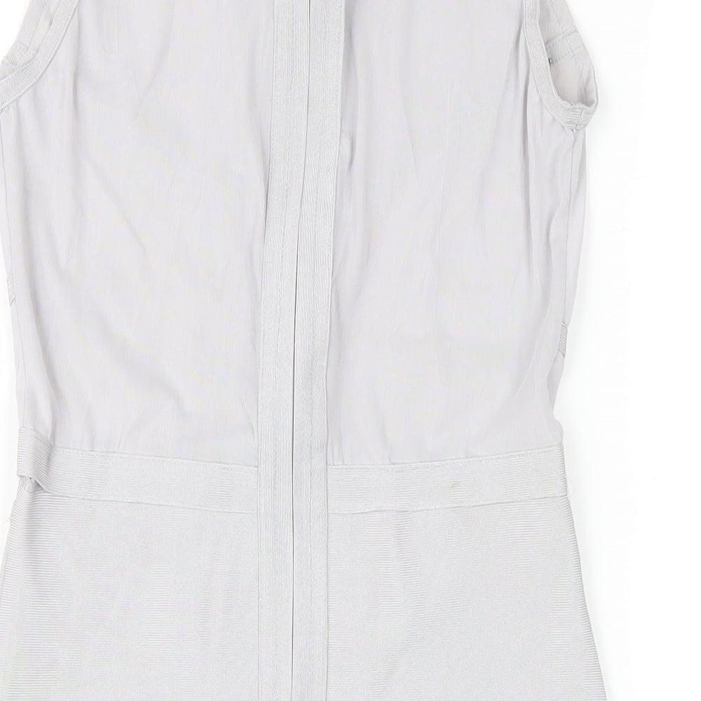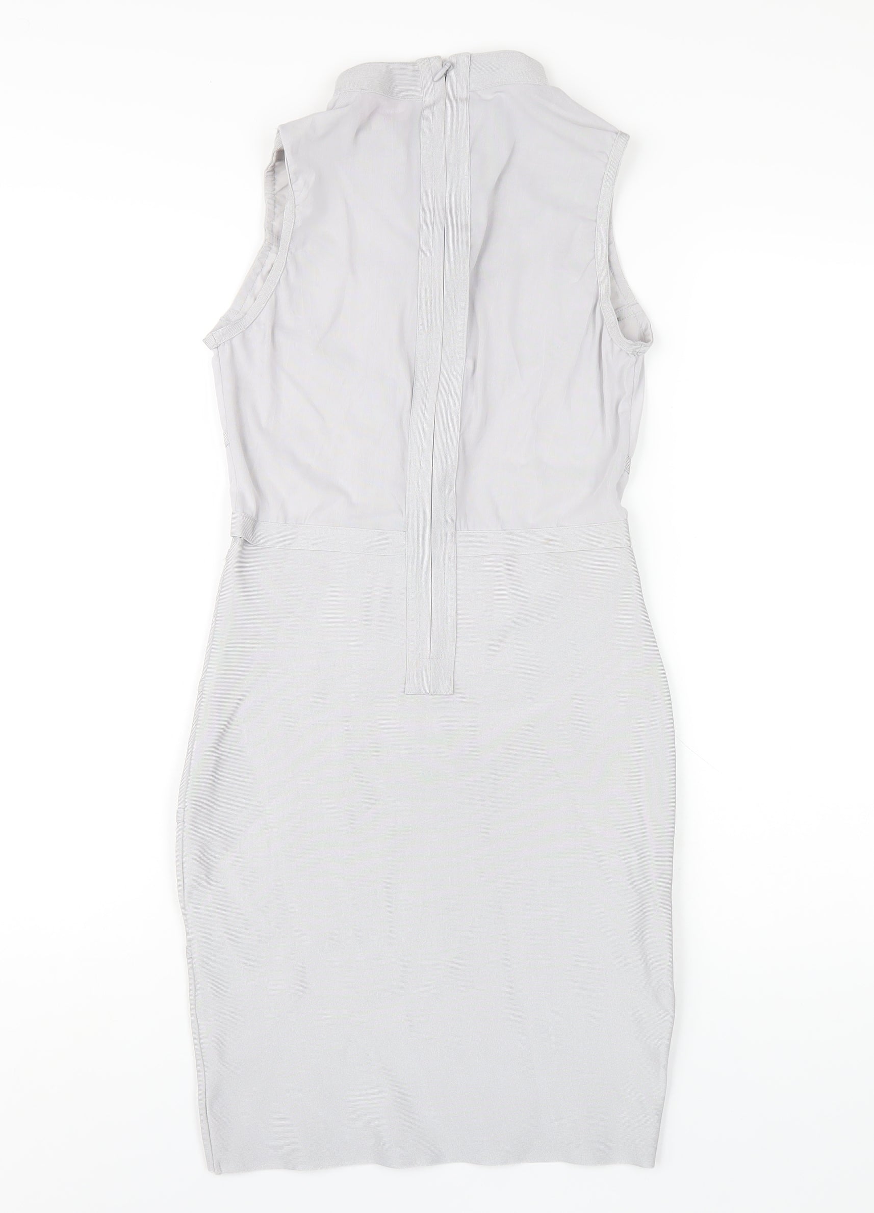 Womens Grey Polyester Bodycon Size 10 Round Neck Zip