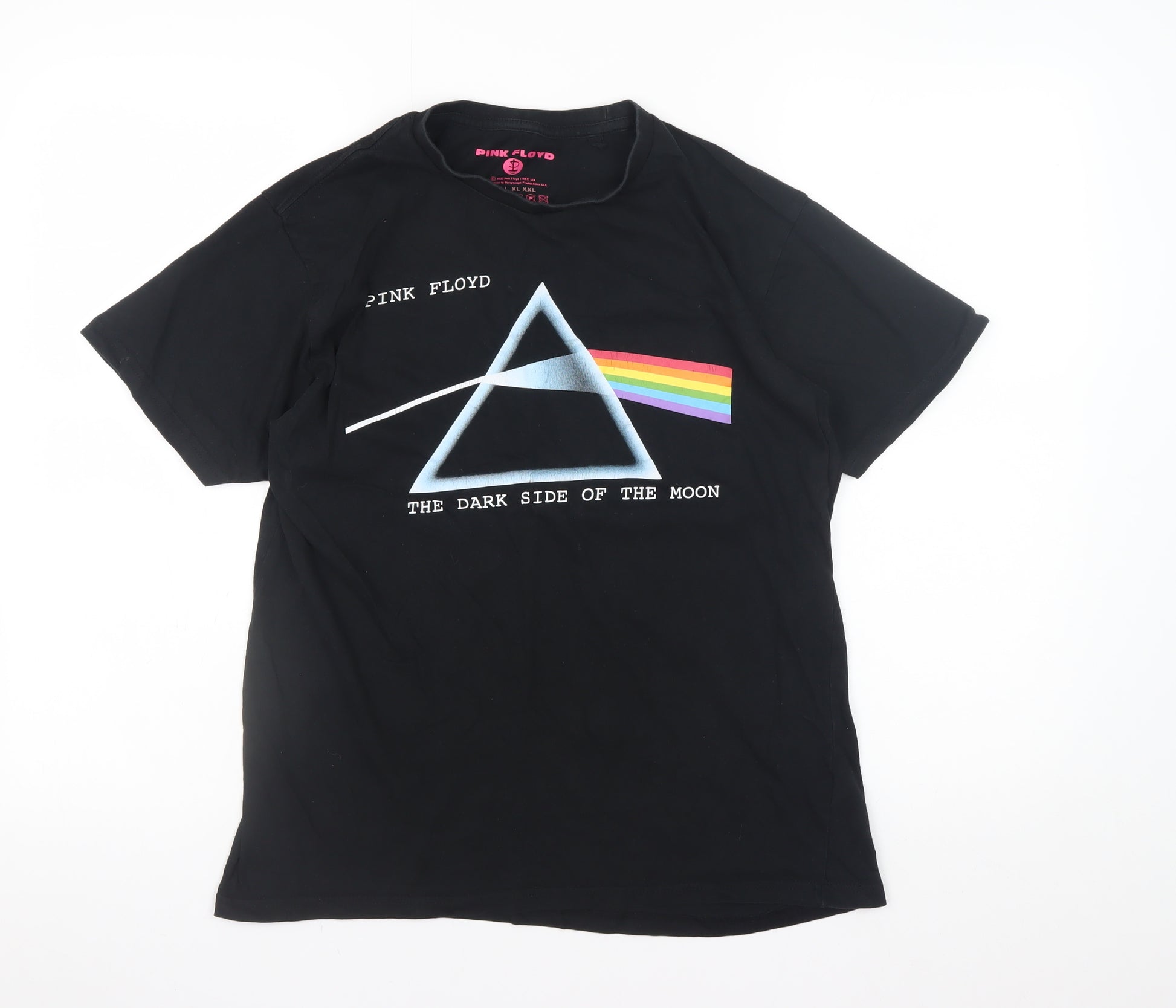 Show off your timeless music style with this officially licensed Pink Floyd women's T-shirt featuring the iconic 'The Dark Side of the Moon' prism artwork. Crafted from soft 100% cotton jersey fabric, this black short-sleeve T-shirt delivers breathable comfort and everyday wearability, perfect for both casual outings and lounging in relaxed style. The regular fit shape offers an easy silhouette that flatters effortlessly, while the classic crew neckline and short fitted sleeves bring a clean finish and iconic look. Made under licence by Rock Off, this shirt ensures quality and authenticity for Pink Floyd fans. The design captures a piece of rock history, celebrating one of the most recognised albums of all time. Its lightweight cotton material keeps you cool throughout all seasons, with easy machine wash care for practical everyday use. The bold rainbow prism graphic adds striking colour contrast against the solid black background for a standout but understated retro aesthetic. Perfect for concerts, festivals, or everyday casual wear, this T-shirt is as iconic as the music it represents. In excellent pre-owned condition with only minimal signs of previous wear, it maintains great shape and print vibrancy. Pair it with jeans, denim skirts, or a leather jacket to add classic rock edge to any outfit. A must-have wardrobe staple for music lovers and vintage band tee collectors alike, combining comfort, lasting quality, and unmistakable Pink Floyd style. Don’t miss the chance to own a piece of musical heritage ready to wear and enjoy today.