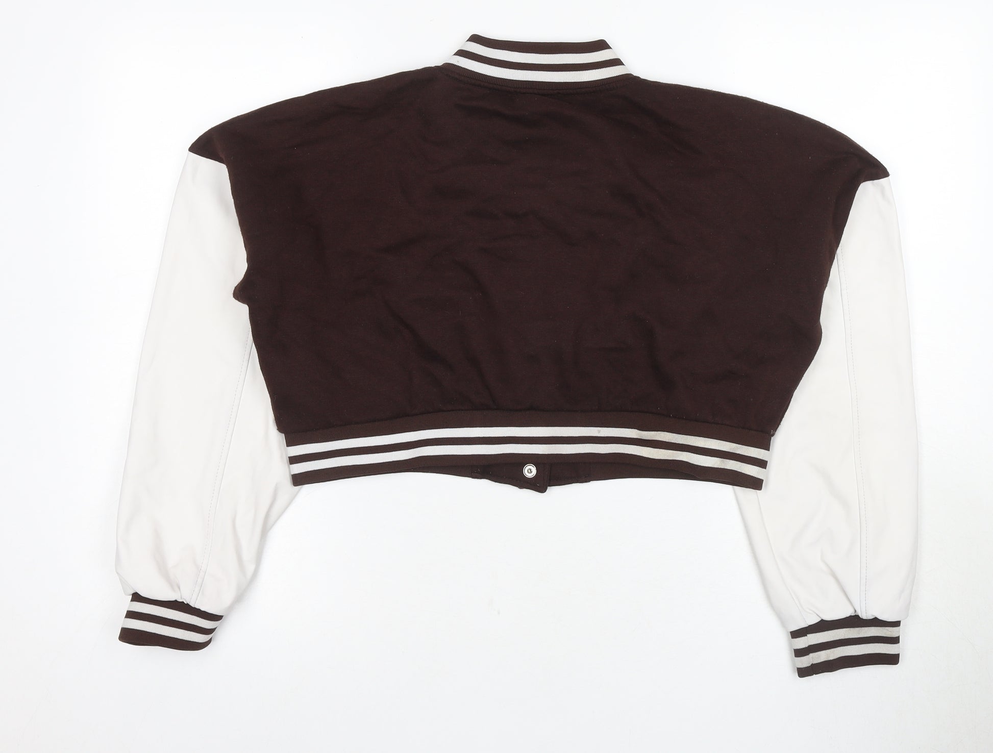 Elevate your casual wardrobe with this stylish women's varsity jacket by Pink Vanilla, perfect for those cooler autumn and spring days. Crafted from a comfortable blend of cotton, polyester, and polyurethane, this jacket offers a relaxed fit while ensuring warmth and durability. The rich brown colour complements various outfits, making it a versatile addition to your closet. The jacket features a classic collared design, snap closure, and distinctive logo accents that embody a college and sporty theme. Its cropped length and long sleeves give it a modern edge, suitable for casual occasions. With its easy machine-washable care, maintaining this jacket is hassle-free. Stay stylish and snug with this must-have outerwear piece.