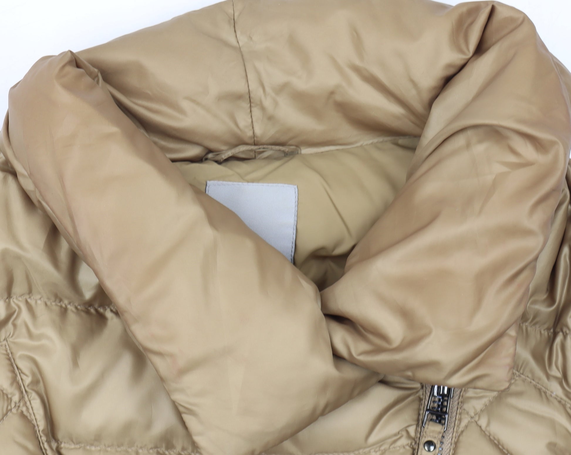 Stay stylish and cosy in the colder months with this Pinko women's long quilted puffer coat. Crafted from high-quality polyester, the coat offers a sleek and durable outer shell with a lightweight down filling to ensure optimal warmth without adding bulk. The subtle beige tone provides a timeless neutral look that pairs effortlessly with any outfit, while the diamond-quilt pattern adds texture and sophistication. Designed for versatile everyday wear, this coat features a modern, asymmetric full zip front closure for a chic finish and a high funnel collar that offers extra protection from the chill. The coat includes discreet side pockets for keeping essentials at hand or warming your hands on brisk days. Inside, the smooth polyamide lining enhances comfort and ease of layering, maintaining an elegant silhouette. Perfect for winter and autumn wear, this Pinko coat combines luxurious Italian design with functional cold-weather practicality. Its regular fit and long length create a flattering outline, ideal for pairing with jeans, tailored trousers, or knit dresses. Whether you're heading to work, travelling, or enjoying a casual day out, this coat ensures you stay warm and stylish throughout the season. In excellent condition with light wear and no flaws, it offers a premium designer look for significantly less than retail prices. This Pinko quilted puffer coat is an ideal choice for women seeking elegance, comfort, and durability in one sophisticated piece — a must-have addition to any modern winter wardrobe.