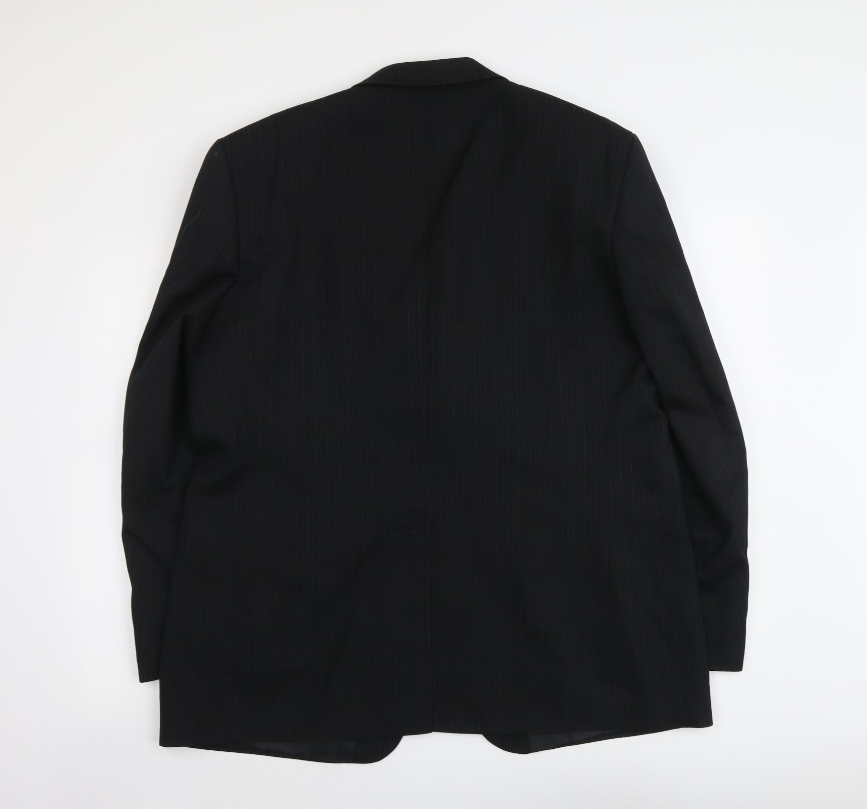 Mens Black Striped Polyester Jacket Suit Jacket Size XL Regular
