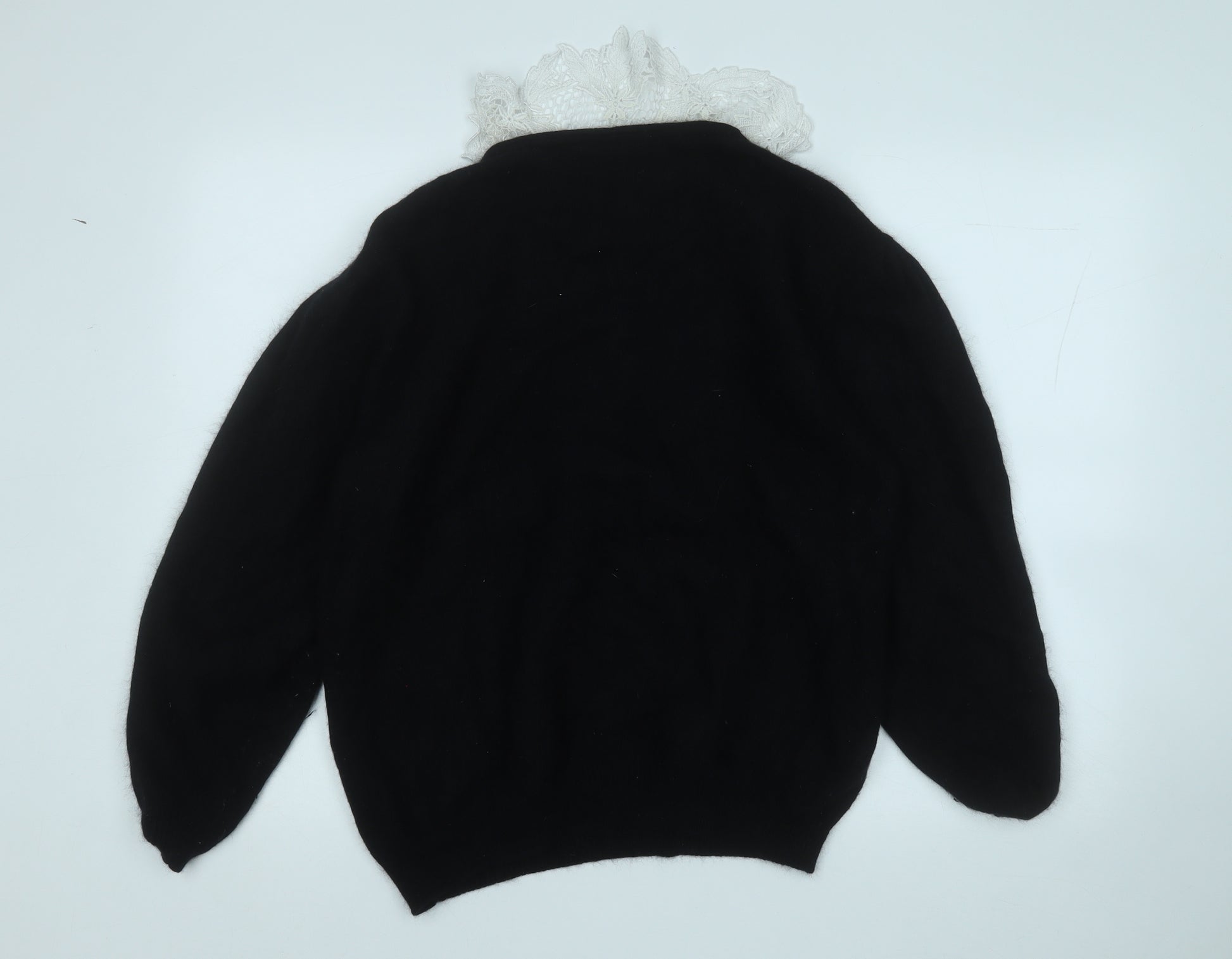 Womens Black Round Neck Wool Pullover Jumper Size XL