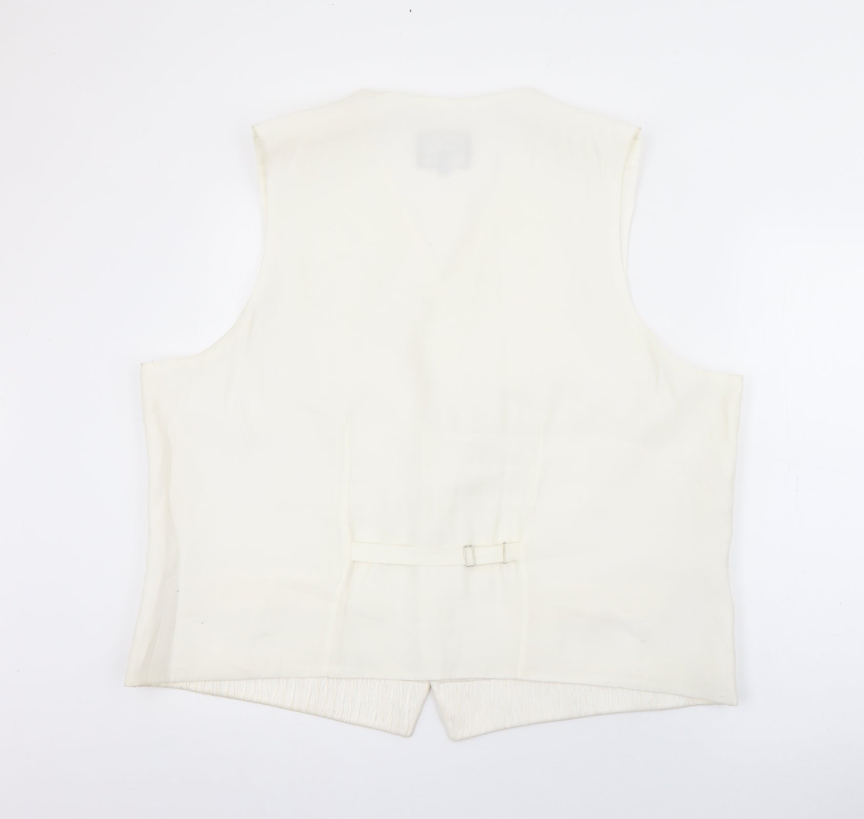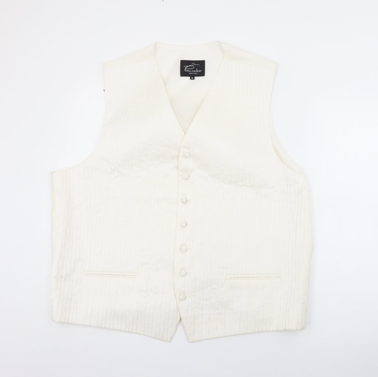 Mens Ivory Polyester Jacket Suit Waistcoat Size L