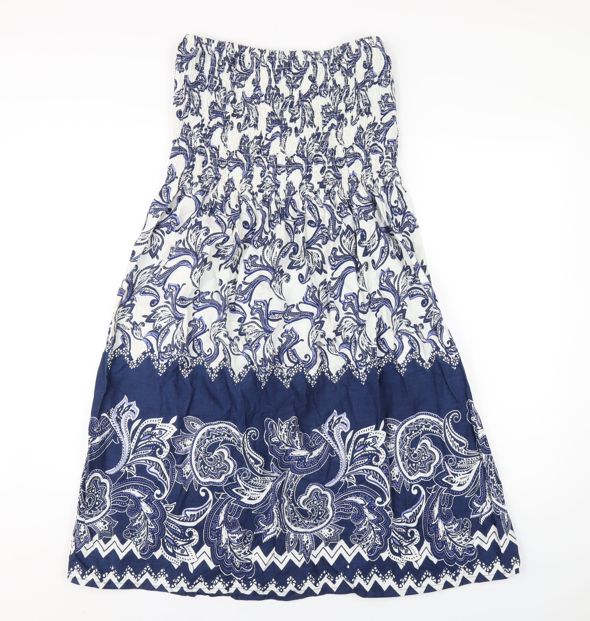 Womens Blue Geometric Cotton A-Line Size M Square Neck Pullover
