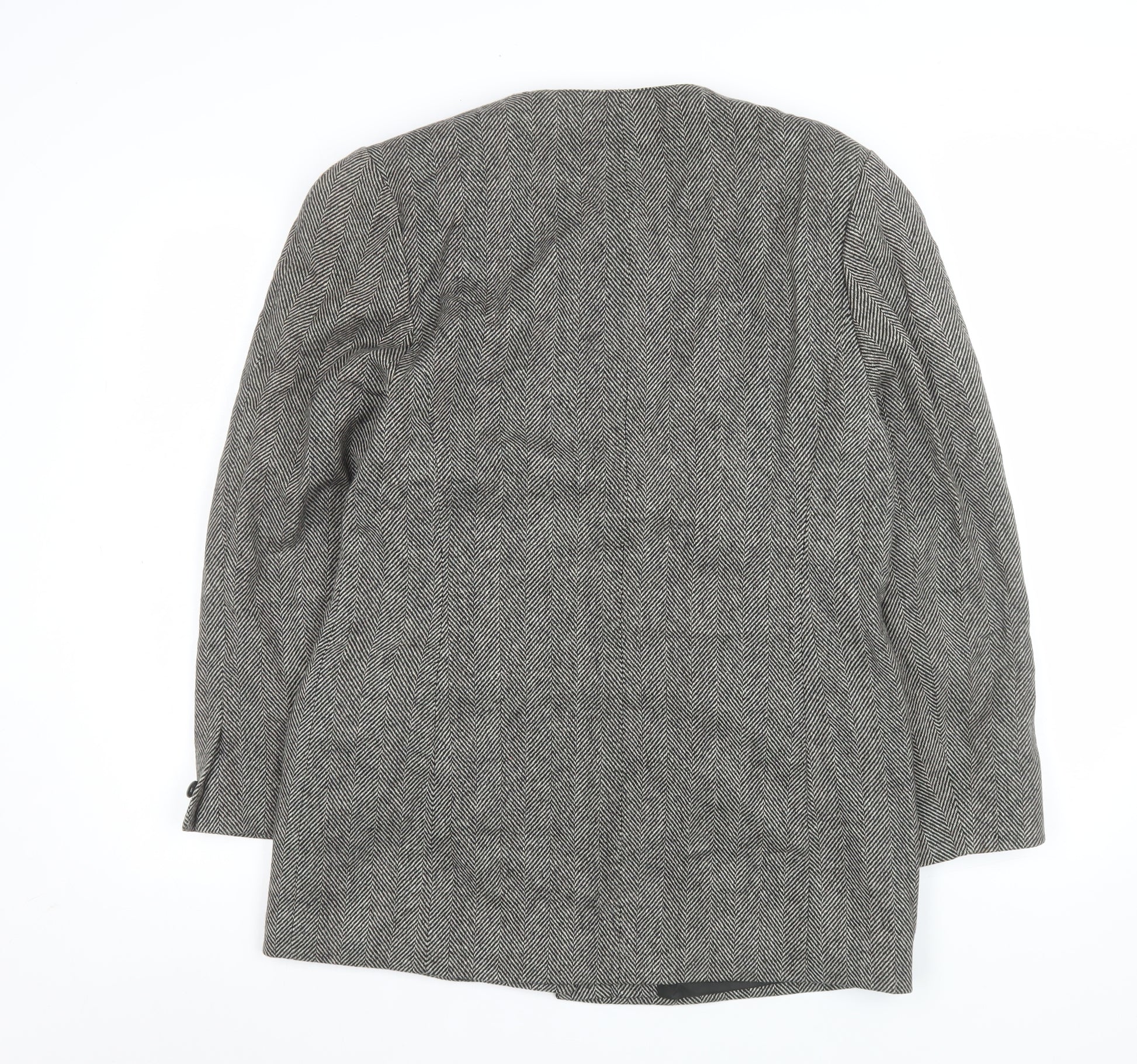 Women Grey Wool Herringbone Long Blazer Jacket Size 14
