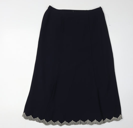 Blue Buddha Womens Black Size 14 Embroidered A-Line Skirt
