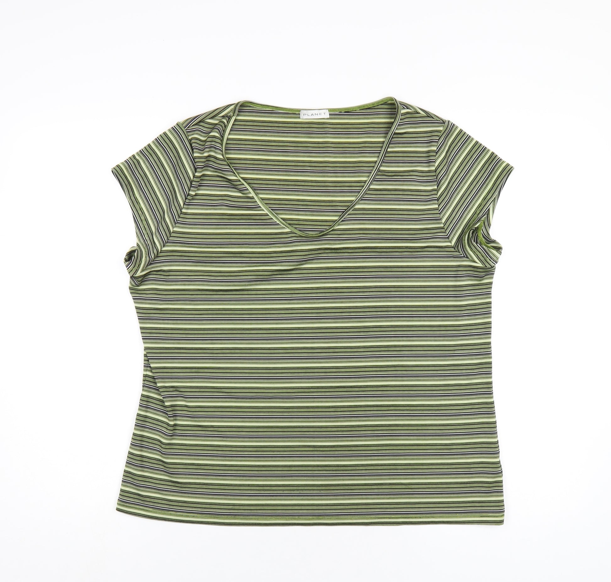 Womens Green Striped Polyester Basic T-Shirt Size XL V-Neck