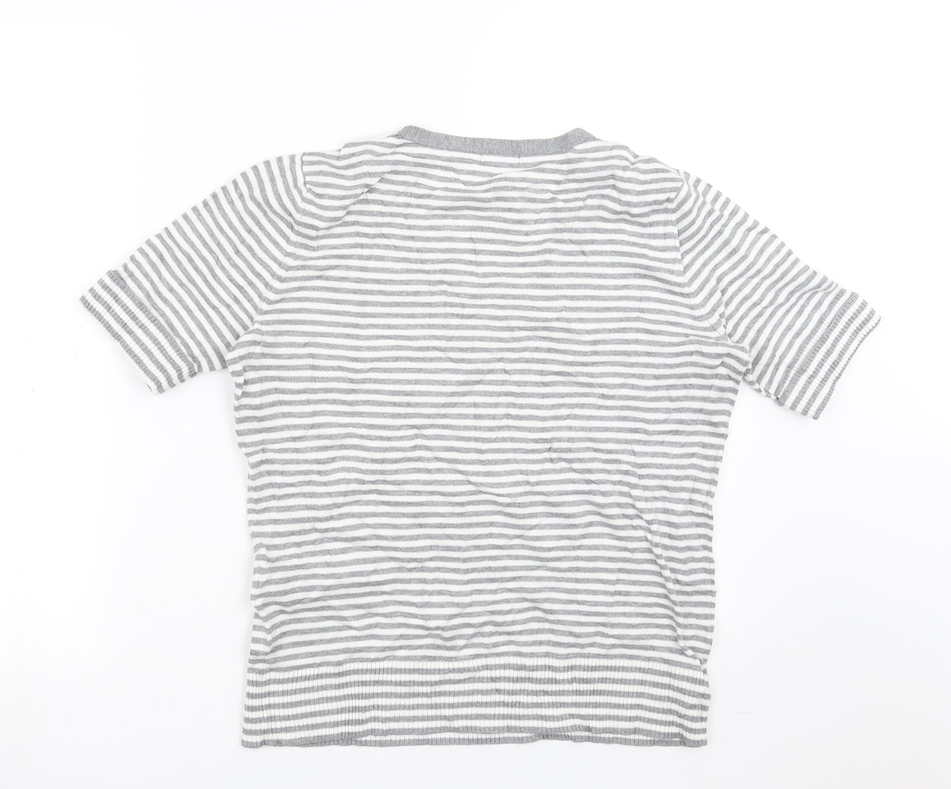 Womens Grey Striped Knit Pullover Jumper Size M