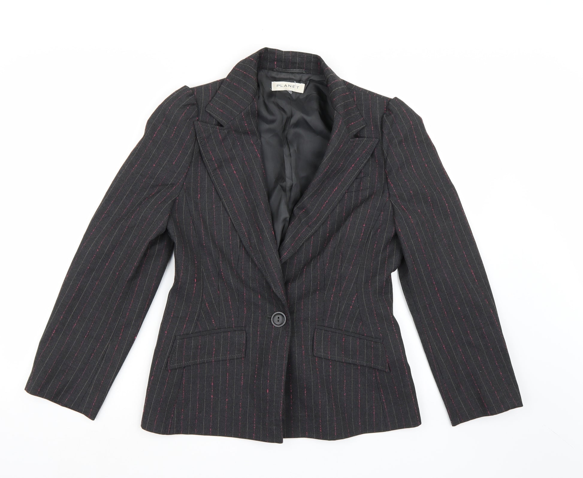 Womens Grey Striped Rayon Jacket Blazer Size 10