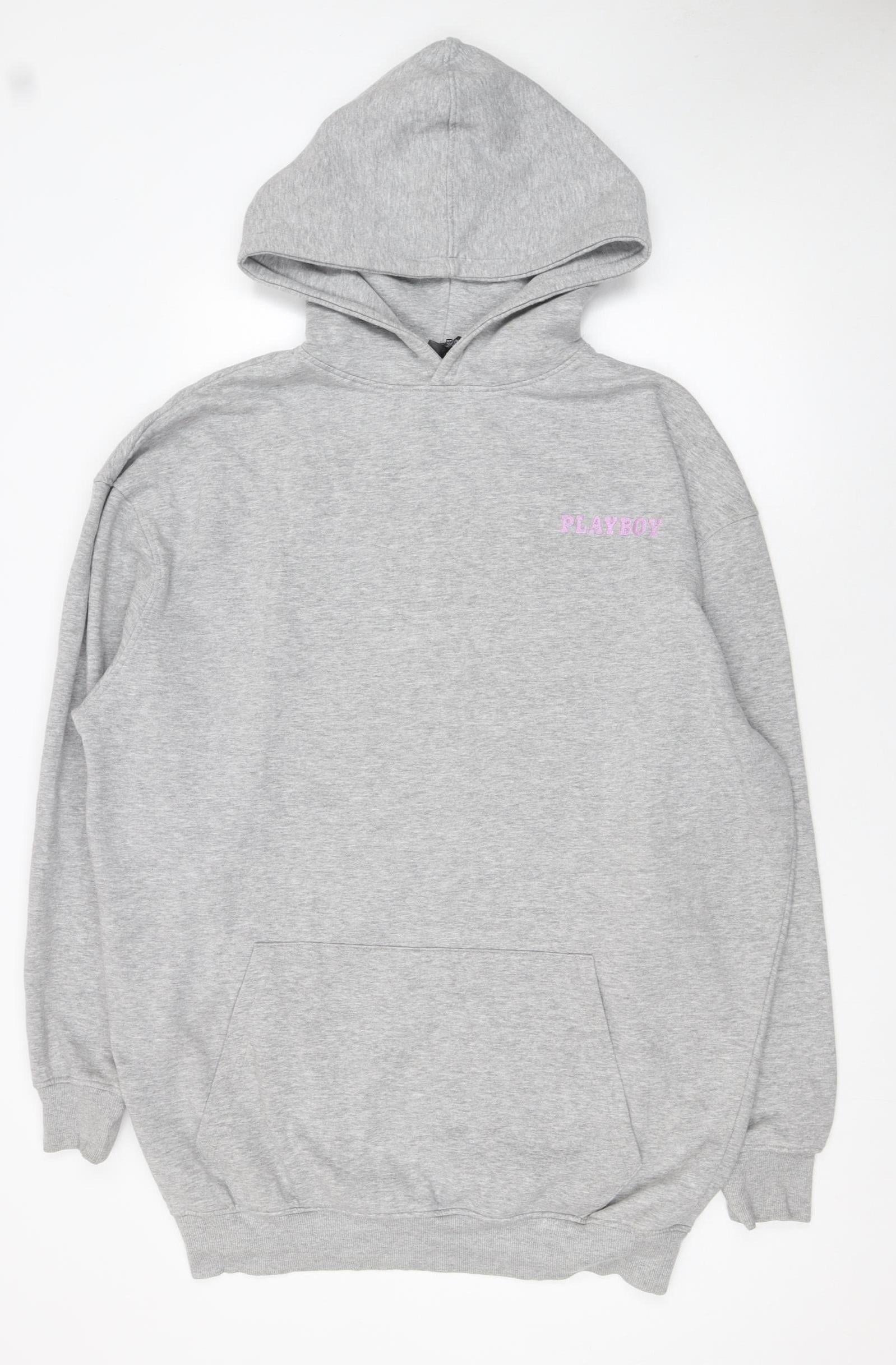 Elevate your casual wardrobe with this chic Playboy x Missguided grey pullover hoodie, a stylish blend of iconic design and modern comfort. Crafted from a soft cotton-rich blend, this sweatshirt delivers cosy wear while maintaining a flattering fit. The minimalist front features the iconic Playboy logo in pink embroidery for subtle branding, while the striking graphic print on the back adds an eye-catching, edgy twist that showcases bold fashion confidence. Designed for versatile wear, the hoodie’s relaxed fit ensures comfort for all-day lounging or statement streetwear styling. This women’s hoodie is a UK size 10, made from a quality blend of cotton and polyester ensuring breathability and softness. Perfect for chilly days, casual outings, or layering during autumn and winter, it embodies effortless cool with a hint of playfulness. The kangaroo pocket adds practicality, while the ribbed cuffs and hem retain subtle shape. This collaboration between Playboy and Missguided celebrates iconic pop culture with modern streetwear flair. Whether paired with jeans, joggers, or leggings, this hoodie promises to upgrade your off-duty look. A must-have for those who appreciate a bold yet comfortable fashion statement.