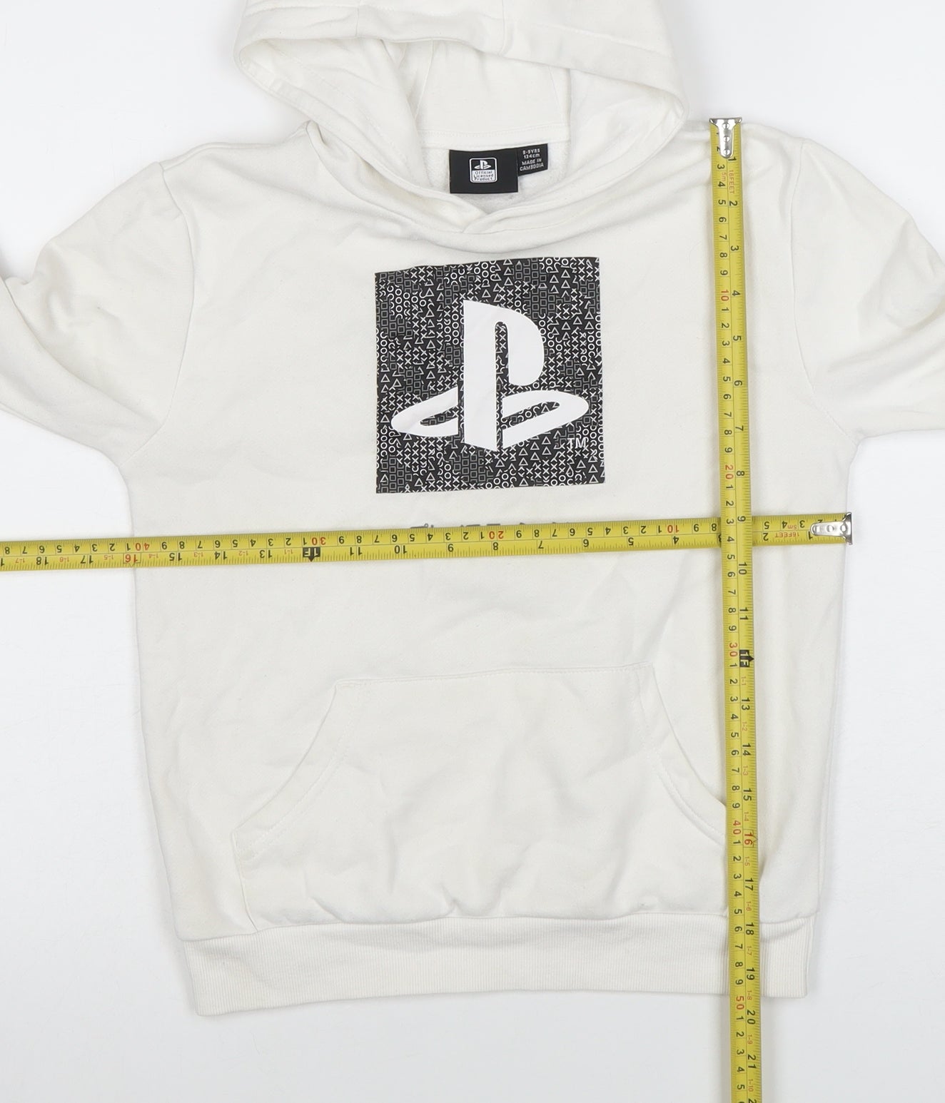 Upgrade your child’s casual wear with this officially licensed PlayStation pullover hoodie, designed for boys aged 8–9 years. Crafted from soft and breathable cotton-rich fabric, this white hoodie offers everyday comfort and style, perfect for school, play, or lounging at home. The front features the iconic PlayStation logo in a bold black and white design, celebrating one of the world’s most beloved gaming brands. The long sleeves and ribbed cuffs provide a snug fit, while the attached hood offers extra warmth and coverage on cooler days. The large kangaroo pocket at the front is ideal for keeping hands cosy or storing small essentials. Made from an easy-care fabric, this hoodie is machine washable and durable enough for frequent wear. It’s a stylish yet practical addition to any young gamer’s wardrobe. Whether teamed with jeans, joggers, or shorts, this hoodie makes the perfect gift for young PlayStation fans who love showing off their gaming pride. Featuring a comfortable regular fit and classic pullover silhouette, this piece blends playful gaming culture with versatile casual fashion. Although gently pre-loved, it remains in excellent condition with only light signs of wear and no major flaws or damage visible. Designed to be worn across all seasons, it’s great for both layering in winter and standalone wear during spring or autumn. Give your little one the perfect mix of comfort, quality, and iconic gaming style with this white PlayStation hoodie — a wardrobe essential for any young fan who enjoys a blend of comfort and cool. Ideal for casual outings, school days, or relaxing gaming sessions at home, this hoodie brings personality and warmth to everyday looks while staying easy to care for and stylish season after season.
