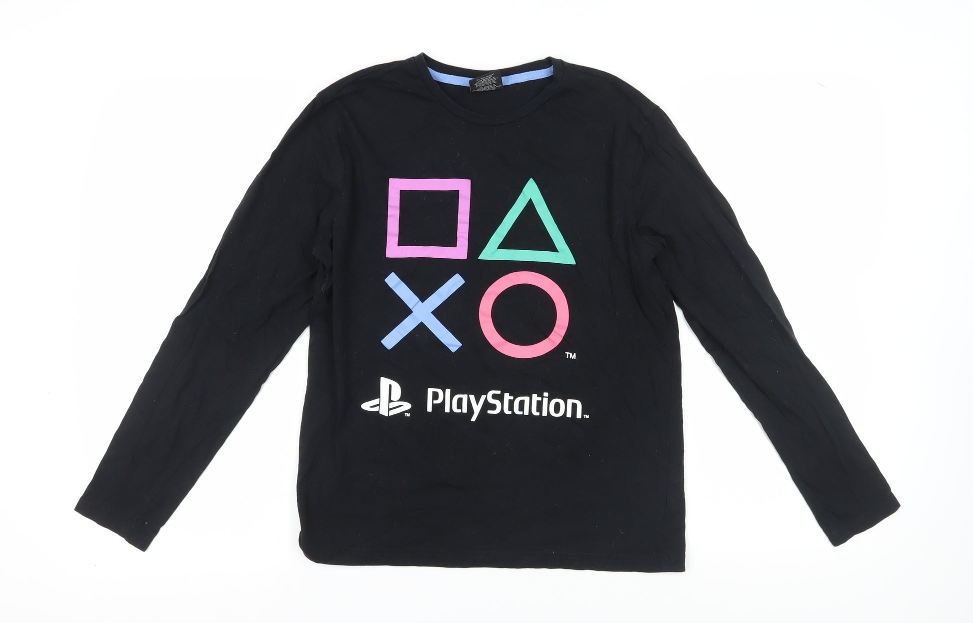 Showcase your love for gaming with this PlayStation men's long sleeve T-shirt, crafted for comfort and style. In a sleek black hue, this shirt features the iconic PlayStation symbols in a vibrant graphic print on the front, making it a must-have for any gaming enthusiast. Designed with a regular fit and a cosy crew neckline, this T-shirt offers a relaxed feel whether you're at home gaming or out with friends. Made from 100% cotton, it provides breathability and easy care, ensuring it remains a favourite in your wardrobe. The jersey fabric adds a soft touch, perfect for all seasons. While the condition remains excellent with a slightly worn print, the absence of tags makes it both a stylish and sustainable choice for eco-conscious buyers. Ideal for casual occasions and daily wear, this T-shirt is a testament to your gaming passion. Purchase this officially licensed PlayStation merchandise today and elevate your fashion game.