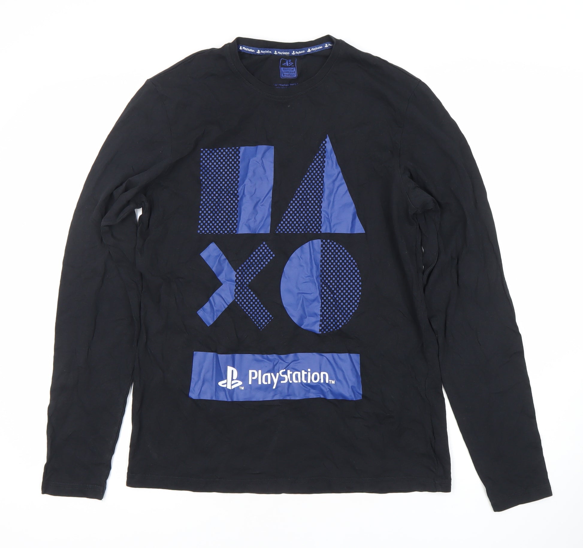 Step into comfort and style with this officially licensed PlayStation men’s pyjama top, designed for gamers who appreciate both quality and fandom. Crafted from 100% soft cotton, this long sleeve nightwear piece combines breathable comfort with a casual, laid-back fit that’s perfect for lounging or sleeping. The black fabric is made from jersey cotton, giving it a smooth, lightweight feel that’s pleasant against the skin and ideal for year-round wear. A bold PlayStation logo across the front adds visual appeal while proudly showing your love for gaming culture.Designed with a classic crew neckline and long sleeves, this pyjama top offers both relaxed comfort and coverage, making it especially suitable for autumn, winter, and spring nights. The pullover closure ensures easy wear with no fuss, while the durable machine-washable cotton guarantees effortless garment care. The graphic print features PlayStation's iconic symbols in contrasting blue, giving the piece a stylish look that feels modern yet timeless. Its lightweight, regular fit provides maximum comfort, making it perfect not only for cosy evenings at home but also for laid-back weekend wear.This pyjama top is an official licensed PlayStation product, ensuring authenticity and quality. With its minimalistic yet striking design, this is more than just sleepwear—it’s a statement piece for gamers who live and breathe the PlayStation universe. Whether you are treating yourself or gifting a PlayStation fan, this nightwear piece guarantees a combination of comfort and character.In very good pre-owned condition with only minor signs of wear, it presents excellently and remains ready to wear. Priced affordably to reflect its quality, this pyjama top delivers fantastic value for money. Why settle for plain sleepwear when you can show off your favourite console brand in style?Bring the PlayStation gaming experience from the console into your nightwear wardrobe with this essential piece. Perfect for evenings on the sofa or restful nights, it’s a must-have for any true gamer.