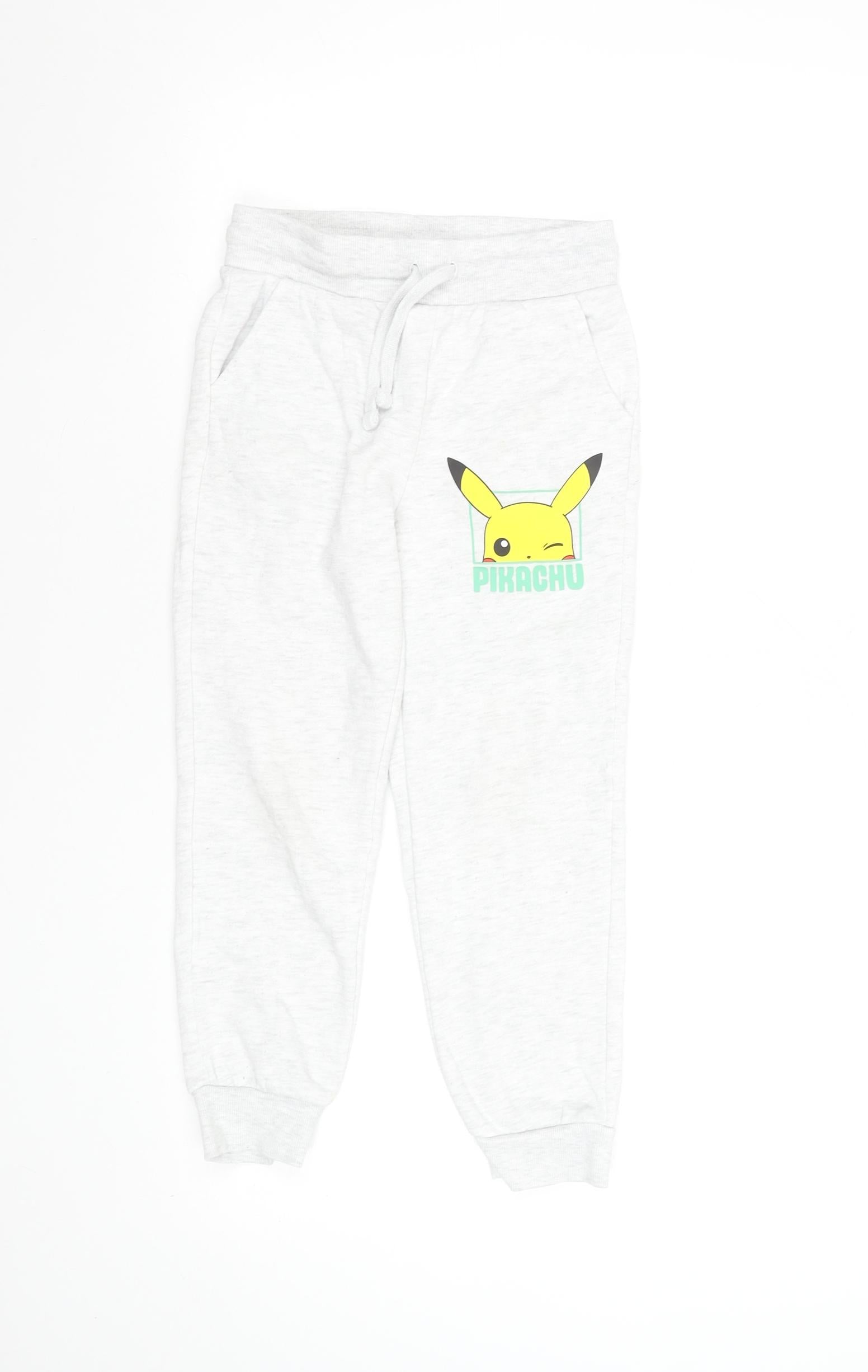 Boys Grey Pikachu Jogger Trousers 6-7 Years Cotton Blend
