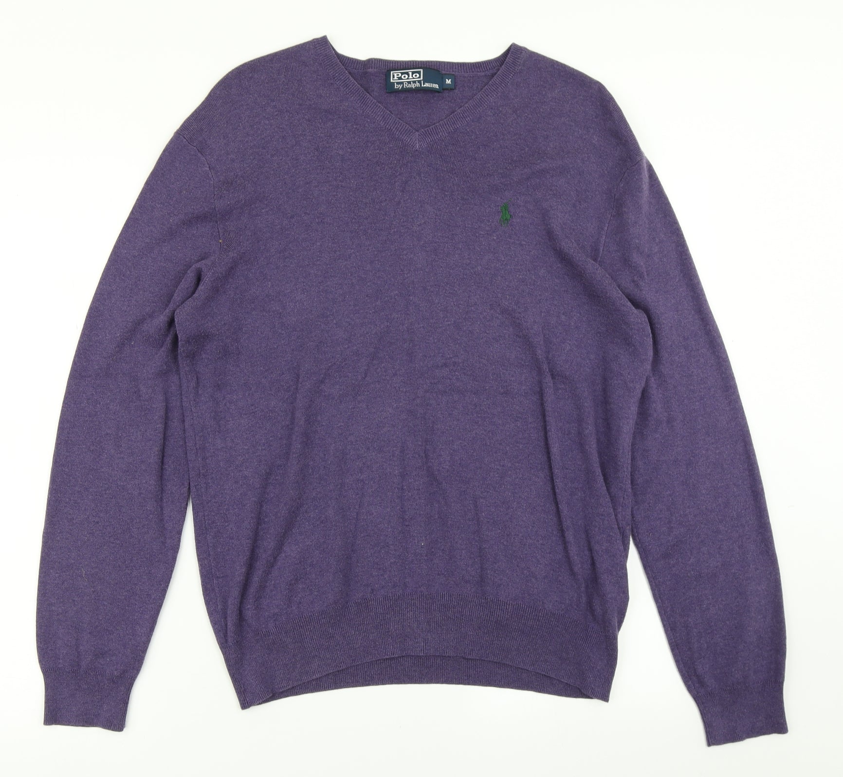 Fat Face Men’s Purple Cotton Cashmere V-Neck Jumper Size M