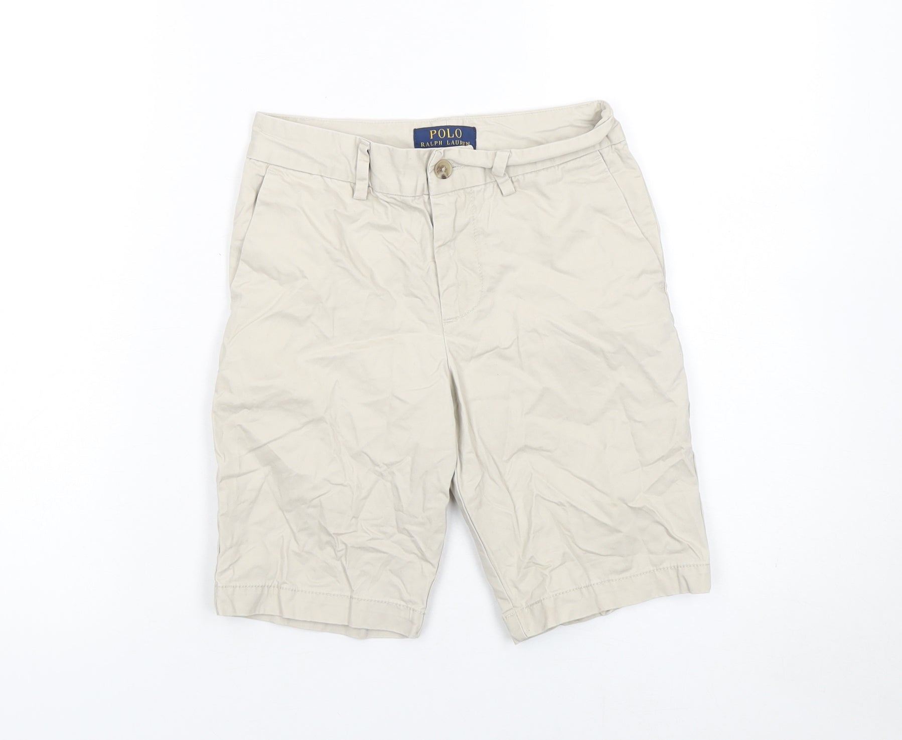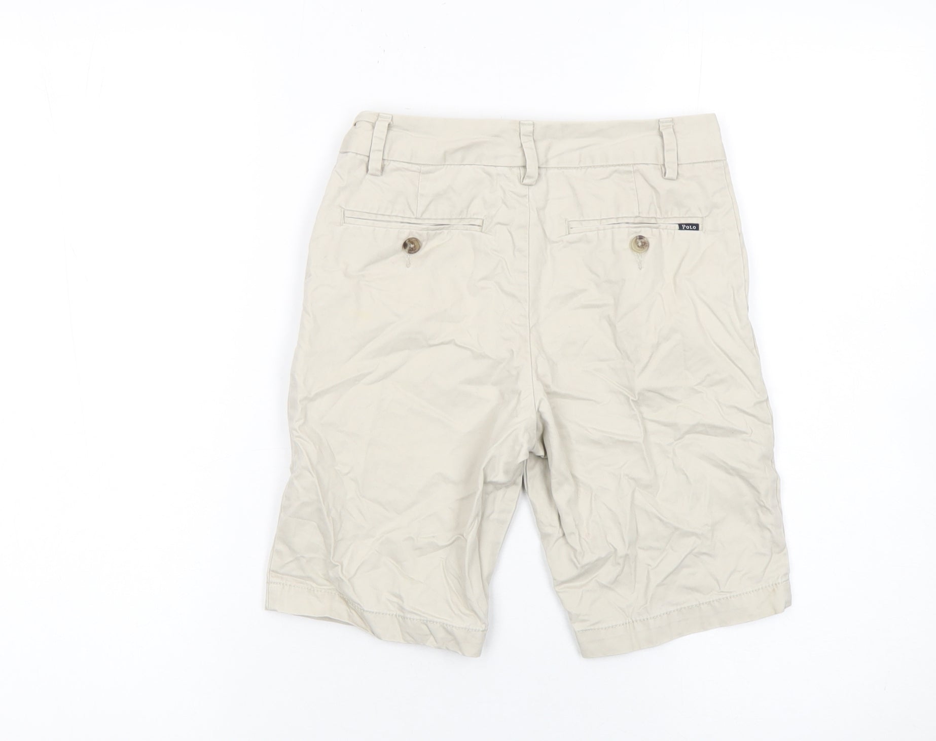 Elevate your young one’s wardrobe with these timeless Polo Ralph Lauren boys’ chino shorts in a versatile beige shade. Expertly crafted from 100% cotton in a smooth twill weave, these shorts offer both durability and comfort, ideal for active days and relaxed outings alike. The mid-rise fit and classic flat front design create a neat, polished look that’s easy to pair with polos, tees, or shirts for effortless style. Featuring a zip fly with a button closure and functional belt loops, these shorts deliver adjustable practicality and a refined appearance. Two slanted front pockets and buttoned back welt pockets enhance their smart yet laid-back charm. Perfect for casual summer occasions, family gatherings, school events, or travel, they embody Polo Ralph Lauren’s signature blend of sophistication and comfort. The light, breathable cotton construction ensures they’re as comfortable as they are stylish, while their neutral beige colour complements any outfit. Carefully inspected, these shorts remain in excellent pre-owned condition—showing gentle use and light creasing from storage but no stains or damage. Machine washable for easy care, they promise to remain a staple in your child’s summer rotation. Whether you’re dressing him for a relaxed seaside afternoon or a weekend outing, these Polo Ralph Lauren chino shorts bring effortless elegance to any setting. Designed for an 8-year-old, they provide a comfortable and versatile fit suitable for countless casual occasions. A must-have for parents seeking quality craftsmanship and enduring style in boys’ fashion.