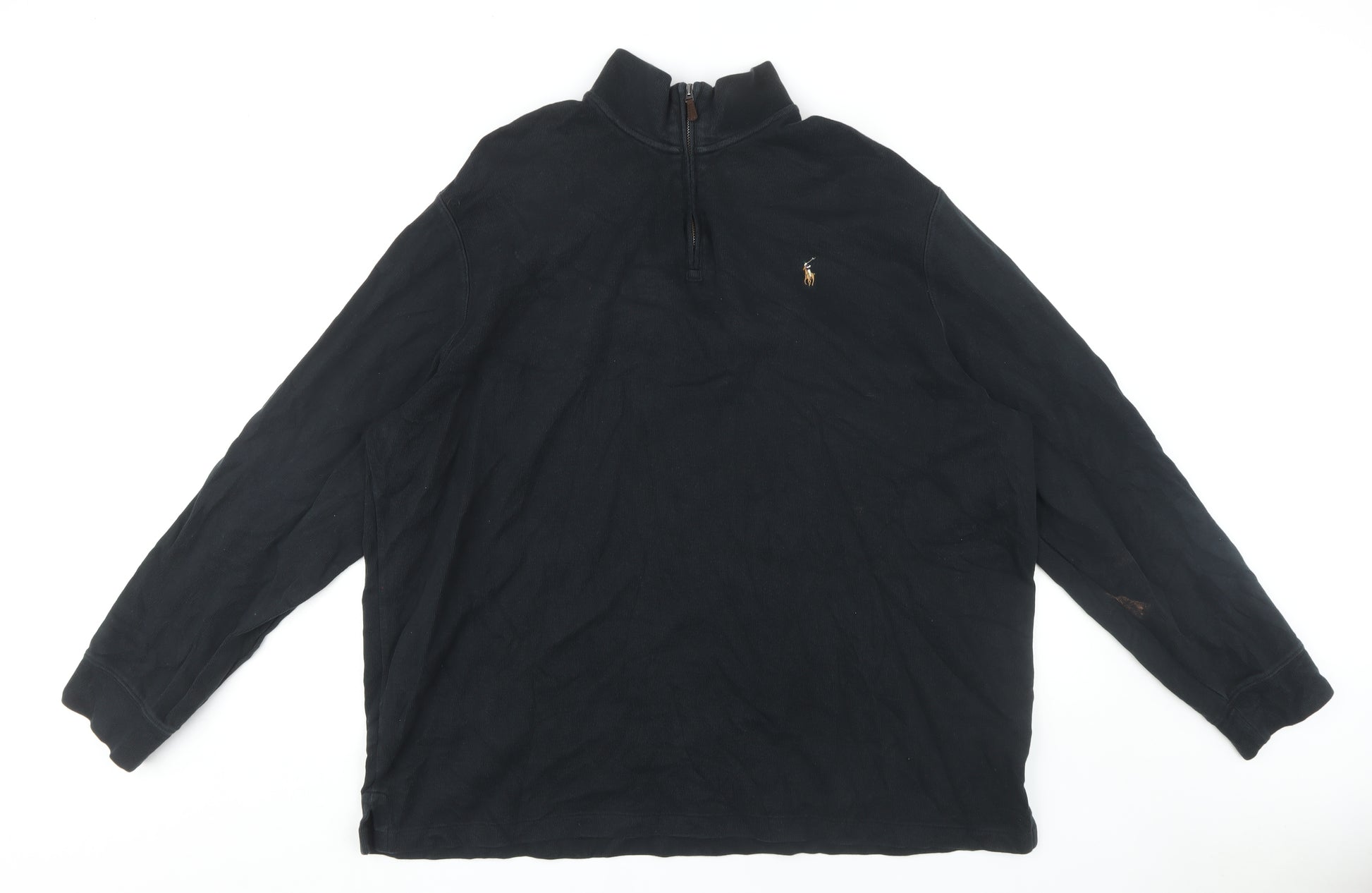 Embrace timeless style with this Polo Ralph Lauren Men's Black Pullover Jumper. Crafted from high-quality cotton, this comfortable knit jumper features a high neck with a 1/4 zip accent, making it perfect for those cooler days. The iconic Polo Ralph Lauren logo sits subtly on the chest, giving it a touch of elegance and brand appeal. Available in XL size, this pullover jumper is designed for regular fit and suits all seasons, allowing you versatility throughout the year. Ideal for casual occasions, it provides a laid-back yet sophisticated look that seamlessly matches with your favourite jeans or chinos. Machine washable for easy care, this jumper offers both style and convenience. Add this classic piece to your wardrobe for effortless fashion that transcends trends.