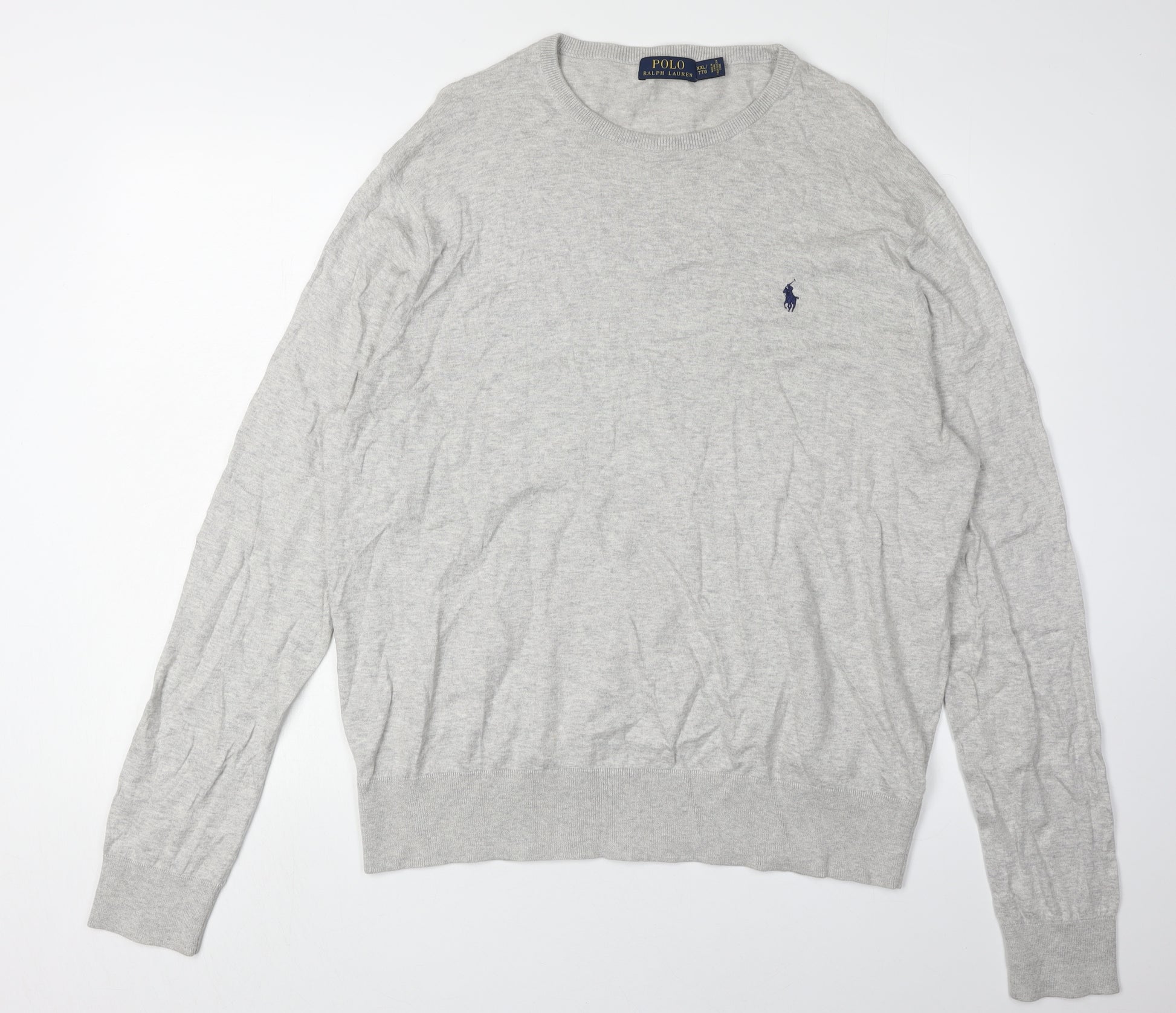Elevate your wardrobe with this Polo Ralph Lauren Men's Pullover Jumper. Crafted from a luxurious blend of 85% cotton and 15% cashmere, this grey jumper promises both style and comfort. Designed for the modern man, it offers a regular fit that ensures ease of movement. Whether you're dressing for a casual day out or layering for those colder months, this versatile piece is perfect for autumn and winter. Featuring a timeless crew neck design and iconic logo accents, it makes a subtle yet sophisticated statement. Ideal for casual occasions, pair this long-sleeve jumper with your favourite jeans or chinos for an effortlessly stylish look. Despite being in excellent condition with slightly creased fabric, it embodies unparalleled quality and attention to detail synonymous with the Polo Ralph Lauren brand. Don't miss out on adding this must-have pullover to your collection.